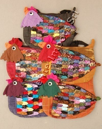 SHOULDER BAG MADE OF COTTON, IN A FORM OF CHICKEN.