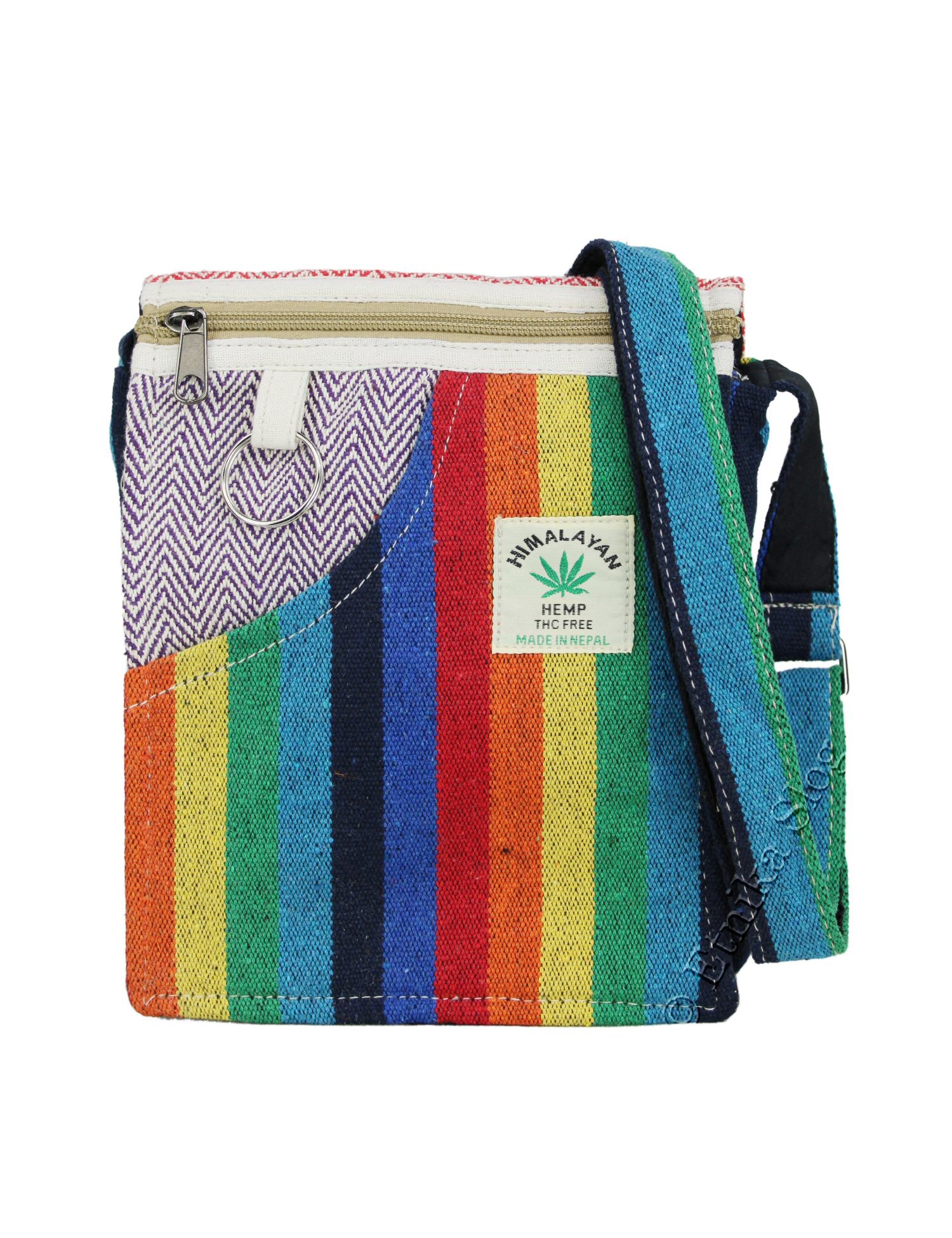 BAG MADE OF HEMP AND COTTON, WITH REGOLABLE SHOULDER STRAP. WITH FOUR SECTIONS,TWO WITH ZIPPER, WRAP WITH HOOK-AND-LOOP, RING FOR KEYS.IN VARIOUS COLOR.SIZE APPROX: 20x20X6 CM