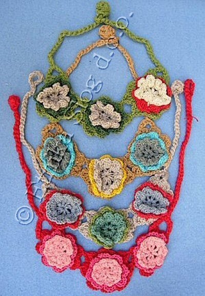 NECKLACE IN CROCHET COTTON WITH 3 FLOWERS.