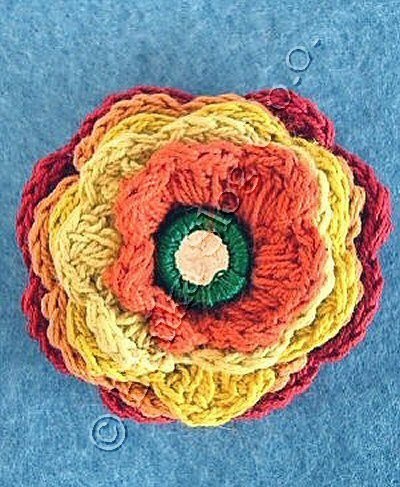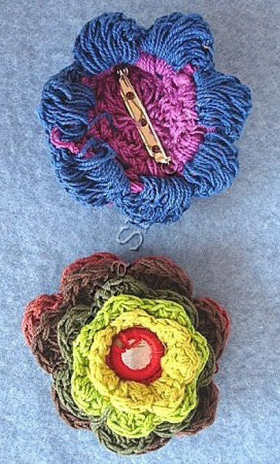 BROOCH IN CROCHET COTTON IN DIFFERENT COLOURS WITH CENTRAL MIRROR.