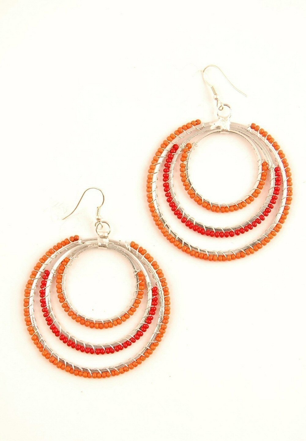 EARRINGS IN WHITE METAL AND BEADS.DIMENSIONS 47 MM, VARIOUS COLORS.MINIMUM QUANTITY 2 PCS.