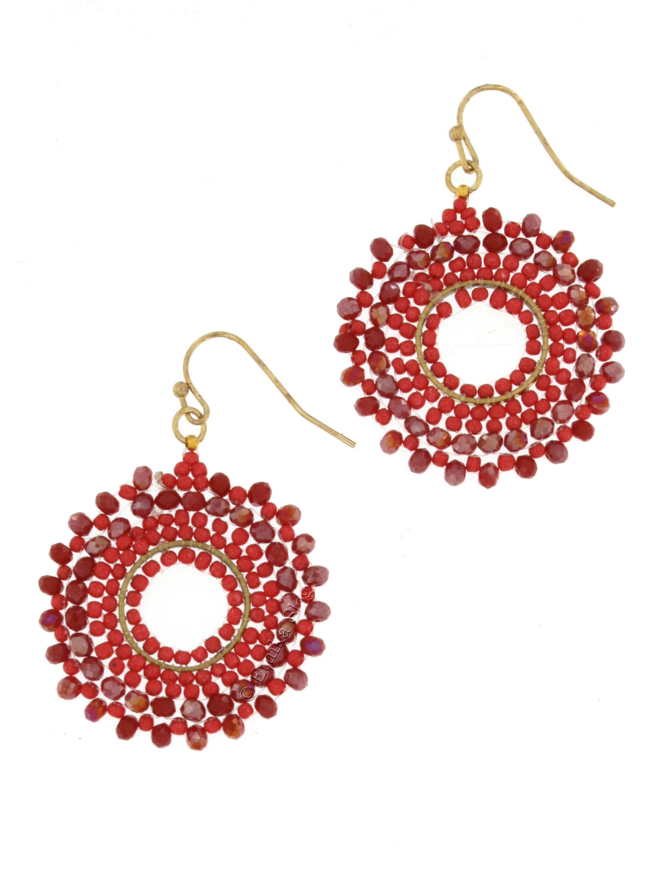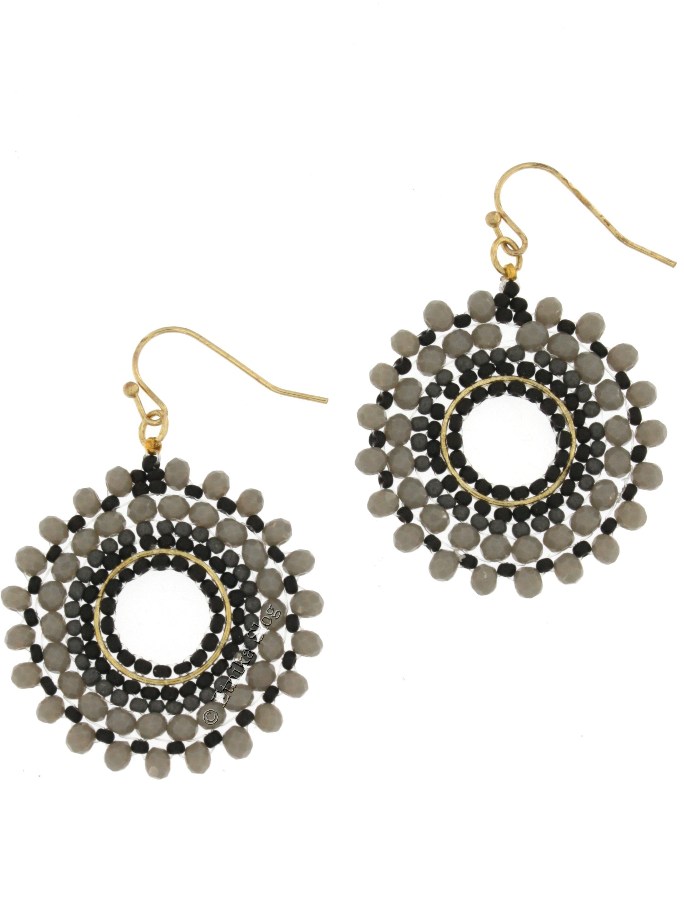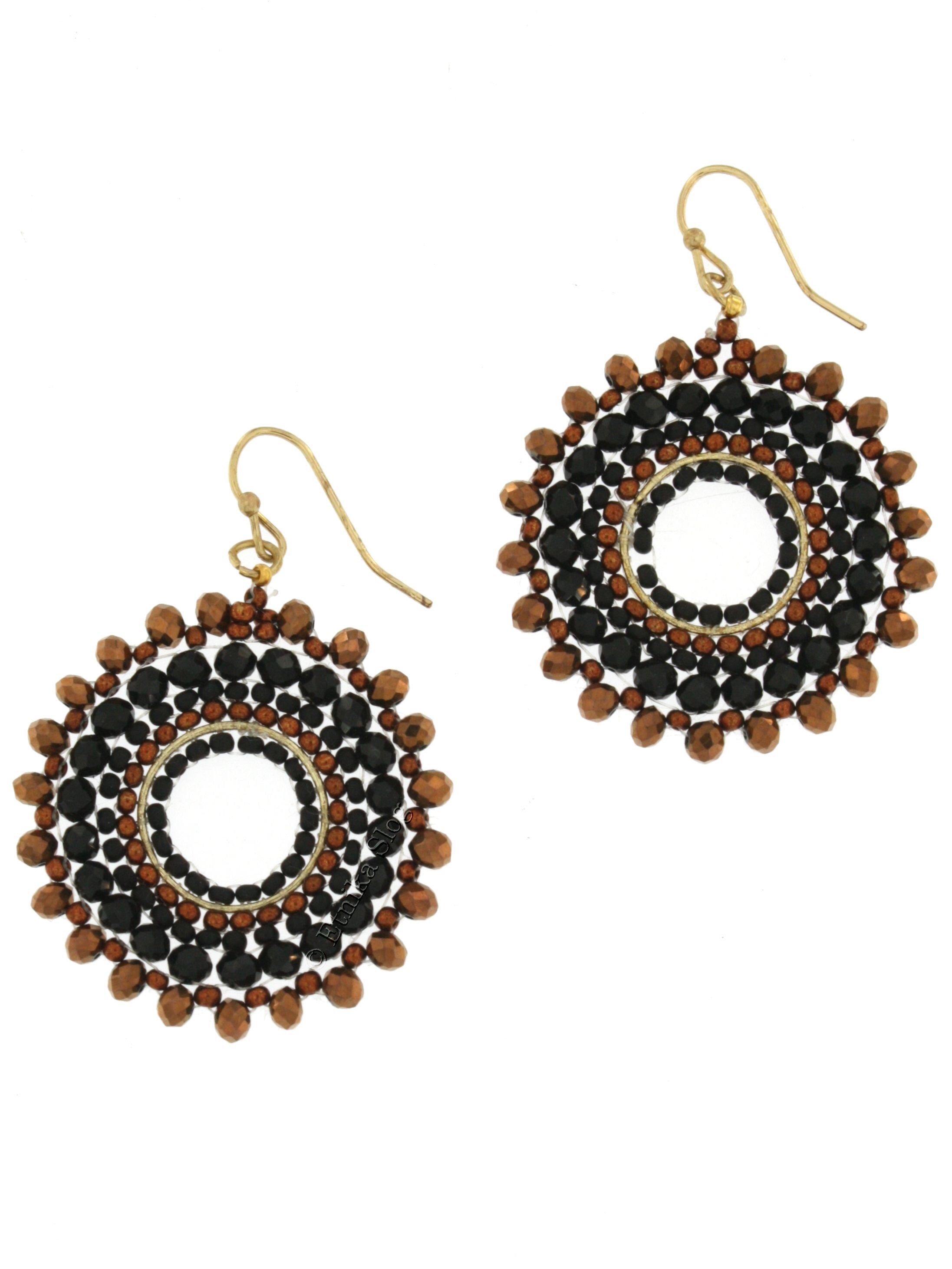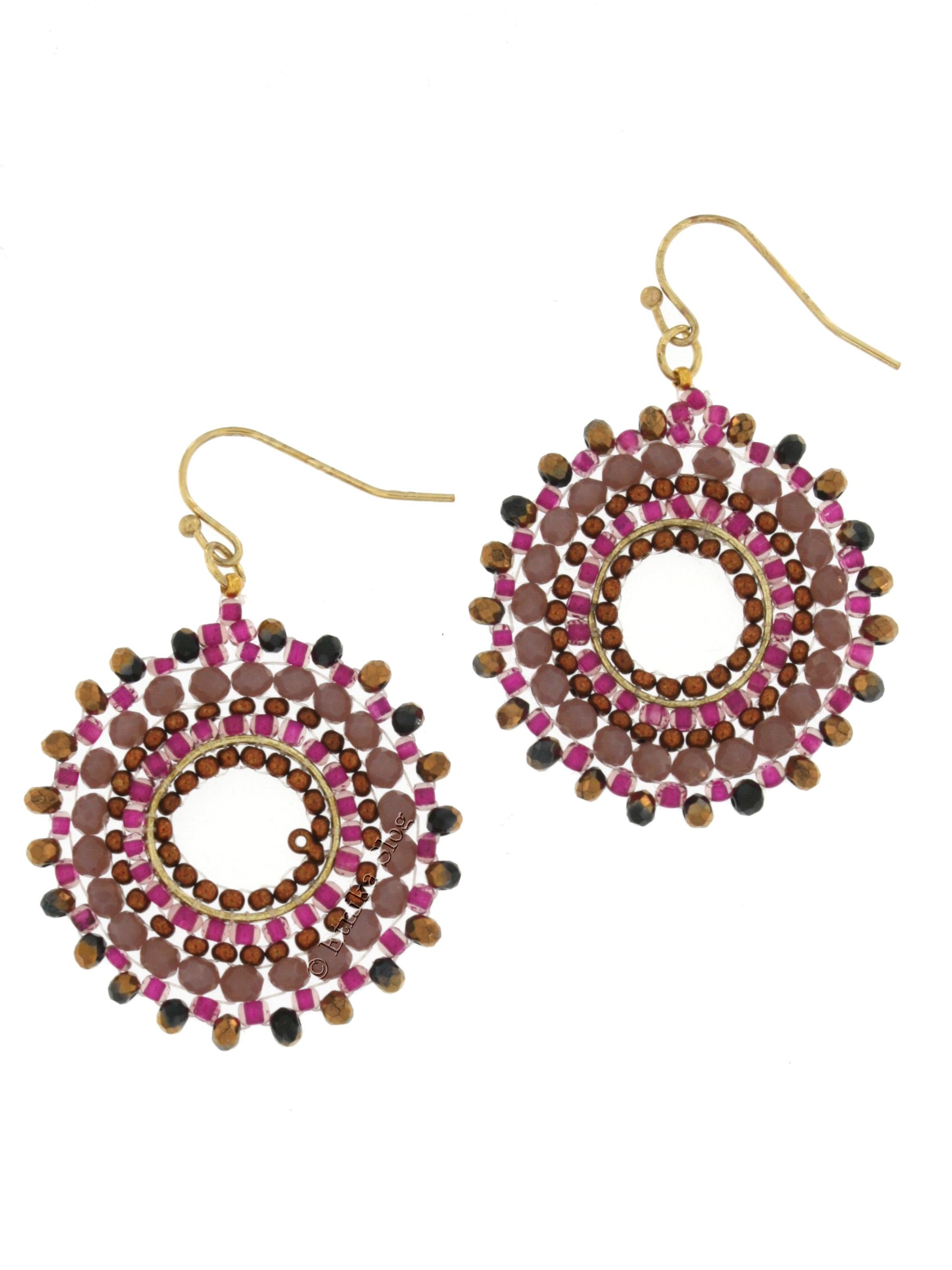 EARRINGS MADE OF WHITE METAL AND BEADS, INF THE FORM OF CONCENTRIC CIRCLES.DIMENSIONS MAX. 34 MM.AVAILABLE IN VARIOUS COLORS.MINIMAL ORDER QUANTITY 1 PAIR.