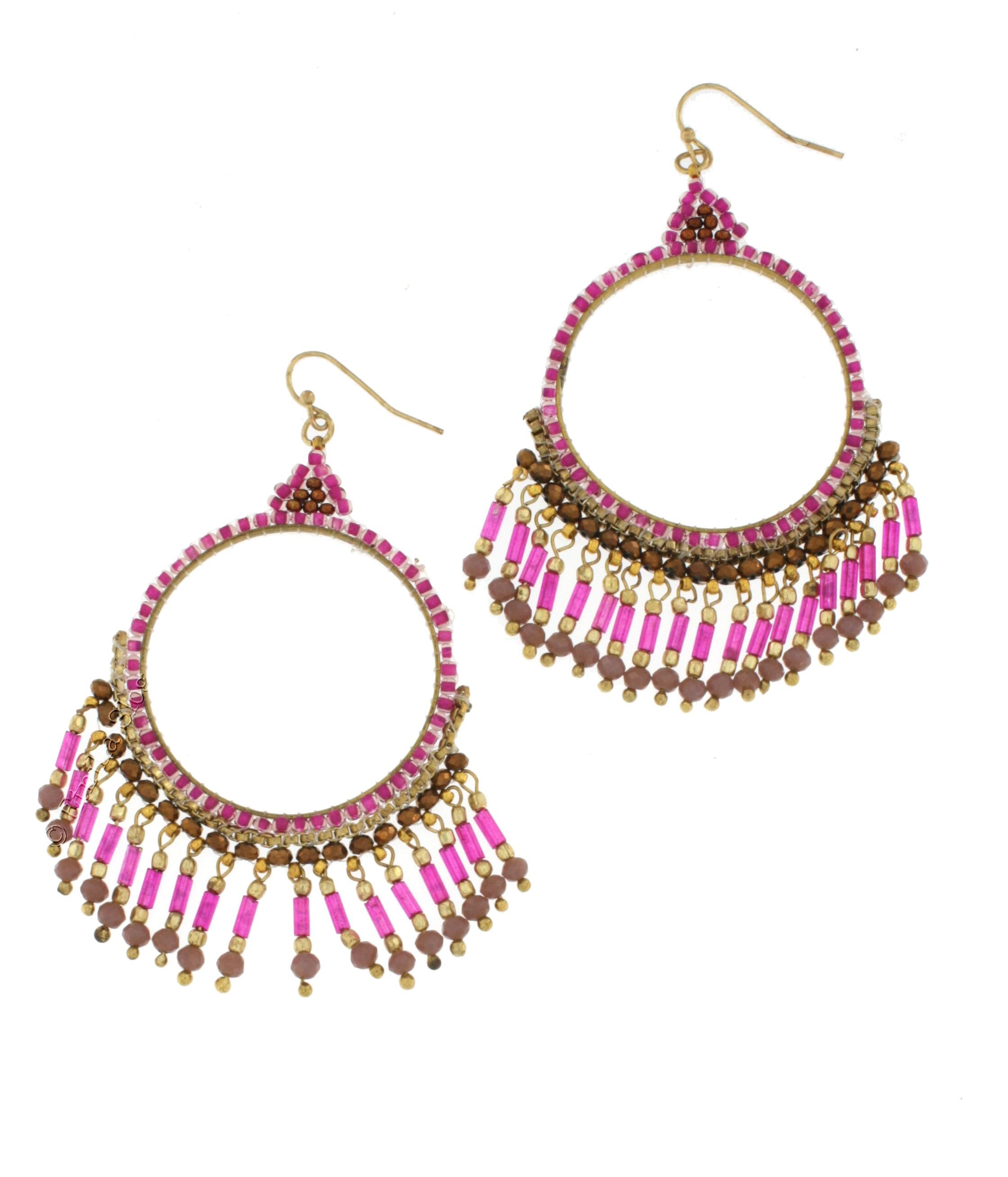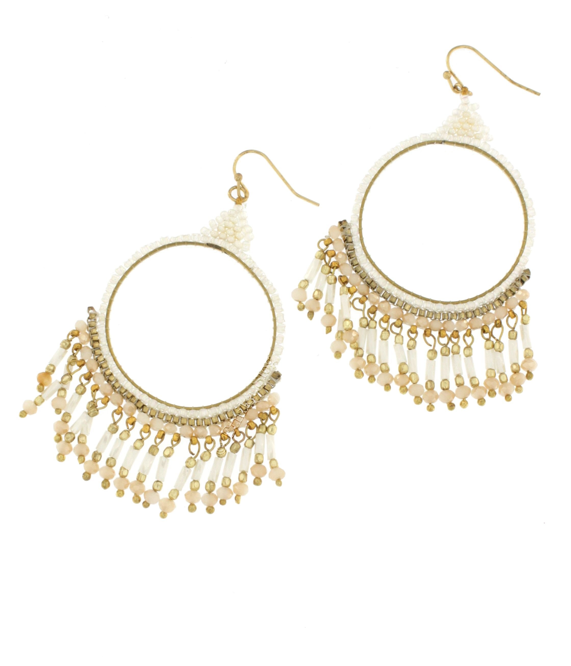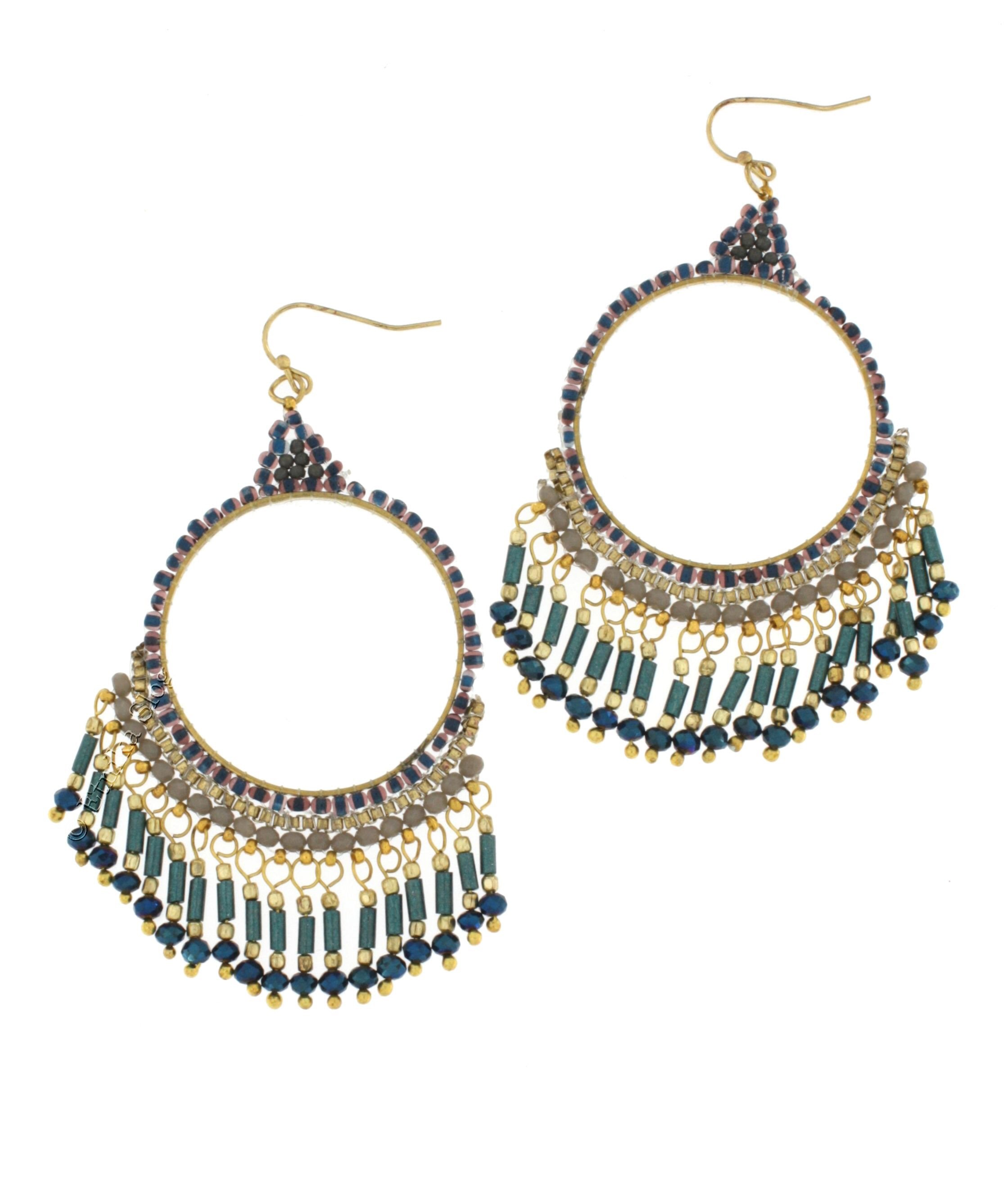 EARRINGS MADE OF WHITE METAL AND BEADS. BIG CIRCLE.SIZE APPROX. 40X75.AVAIABLE IN VARIOUS COLORS.MINIMAL ORDER QUANTITY 1 PAIR