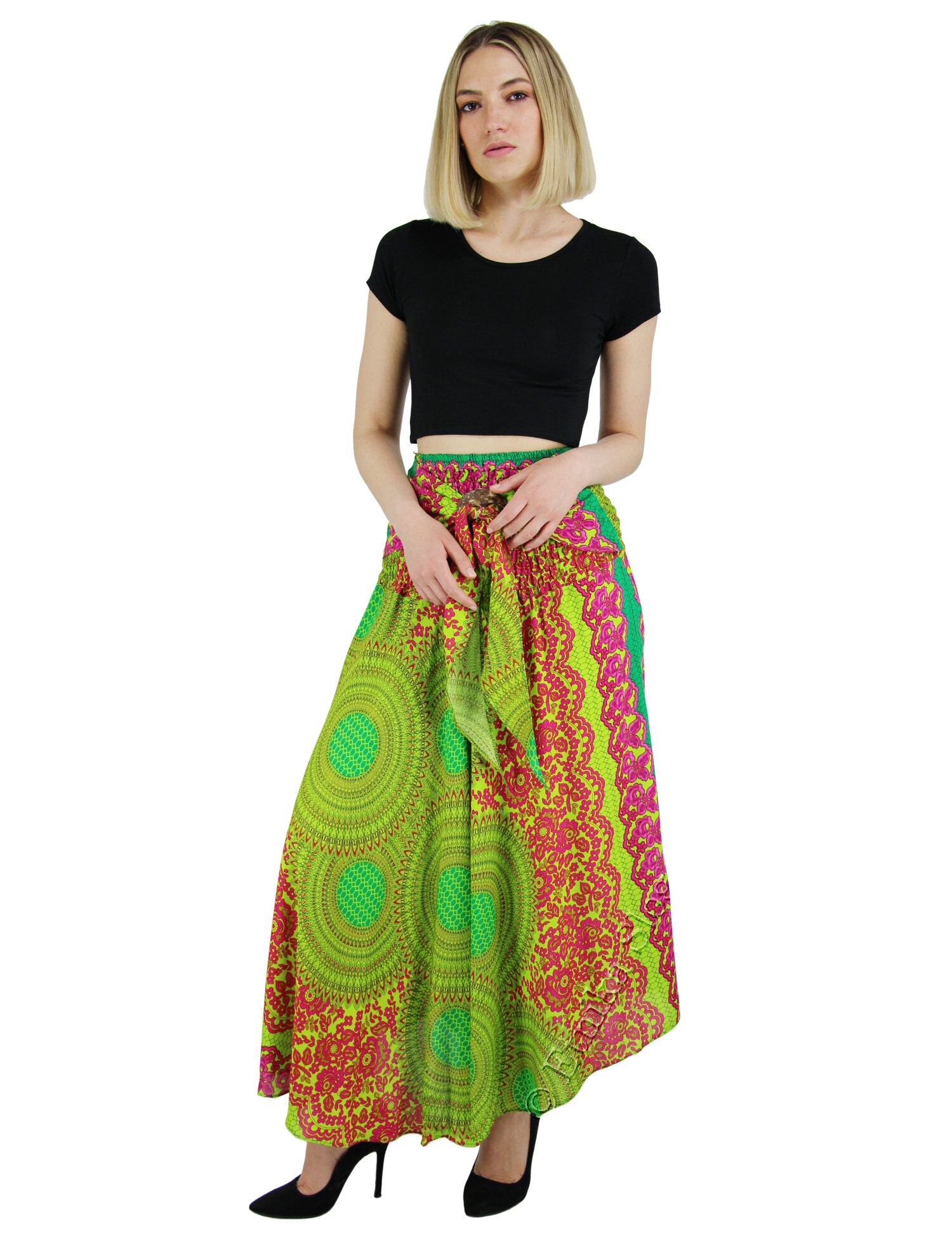 LONG SUMMER SKIRT/DRESS MADE OF VISCOSE WITH ELASTIC AT WAIST AND STRING BELT WITH COCONUT BUCKLE.