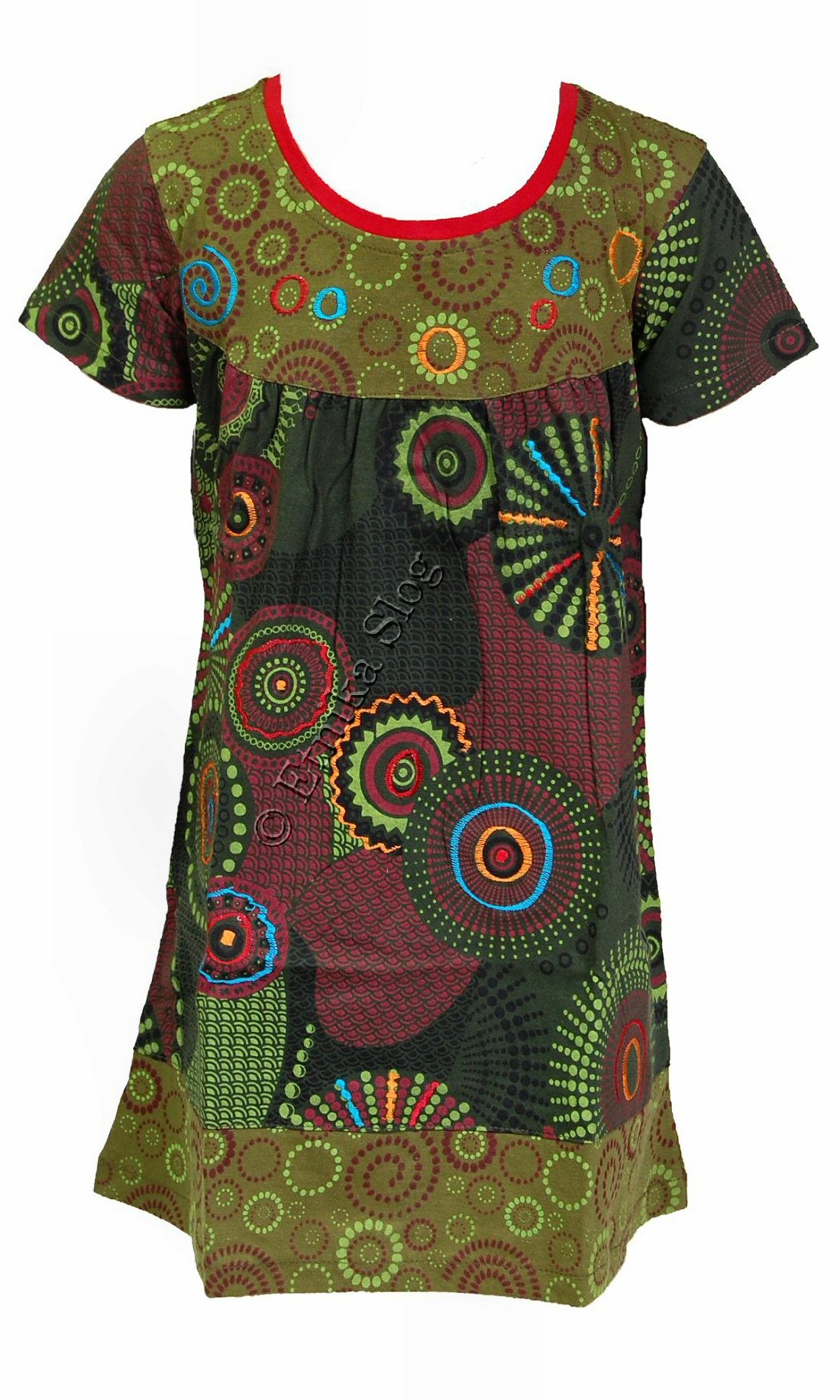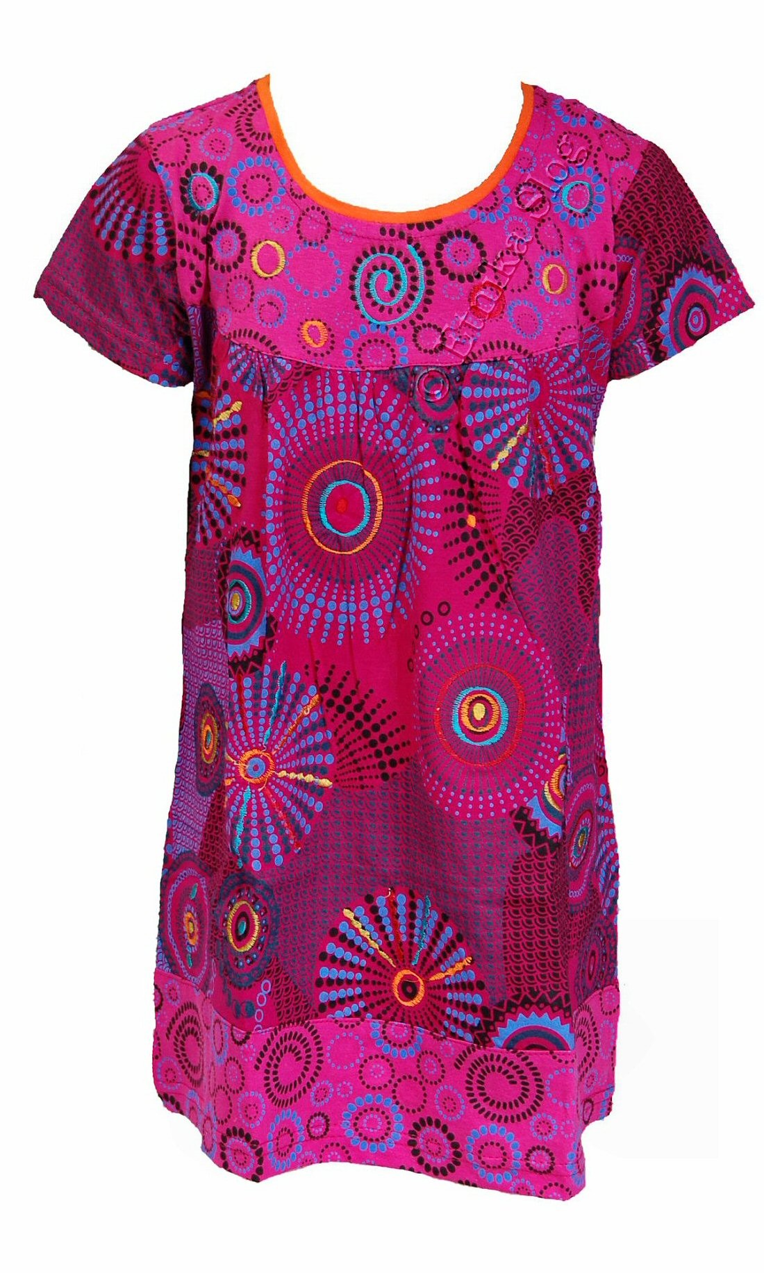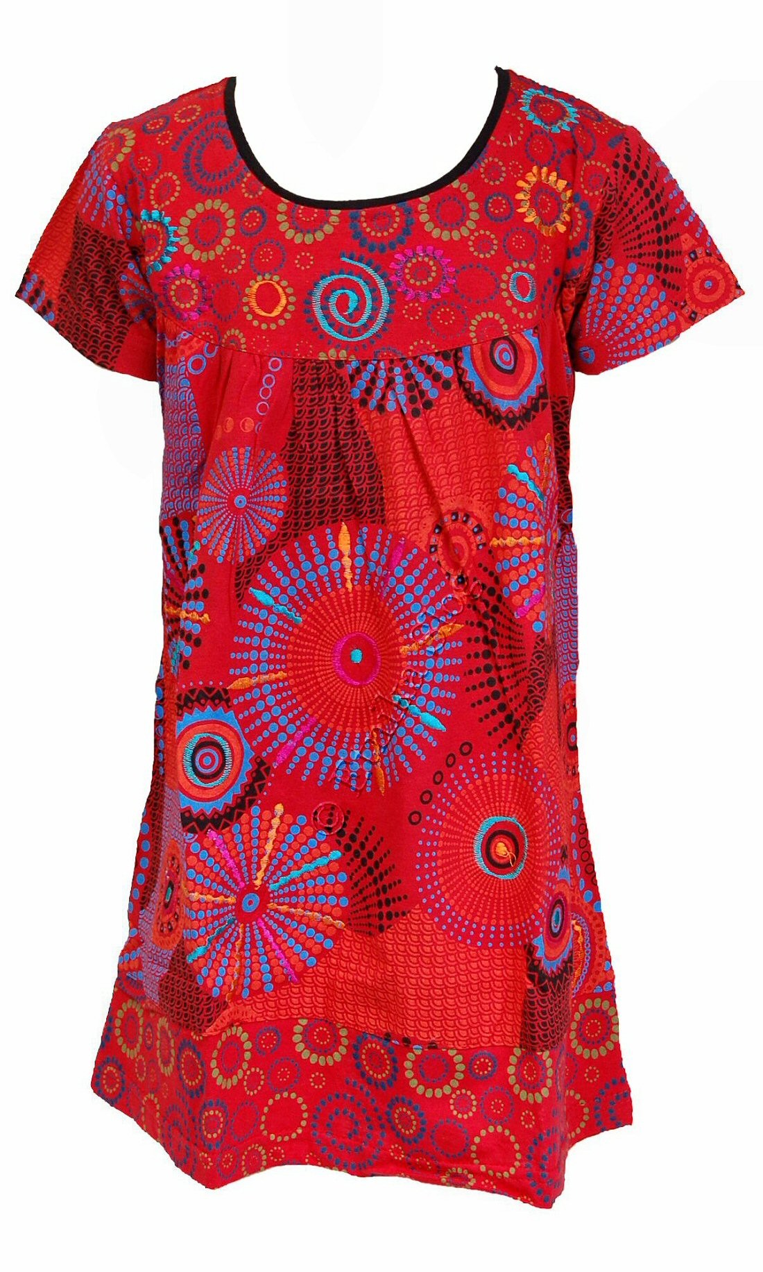 GIRLIE DRESS MADE OF COTTON, SHORT SLEEVES, PRINTED AND EMBROIDERY. AVAILABLE FOR AGES : 2 - 4 - 6 - 8 - 10 IN DIFFERENT COLORS.
