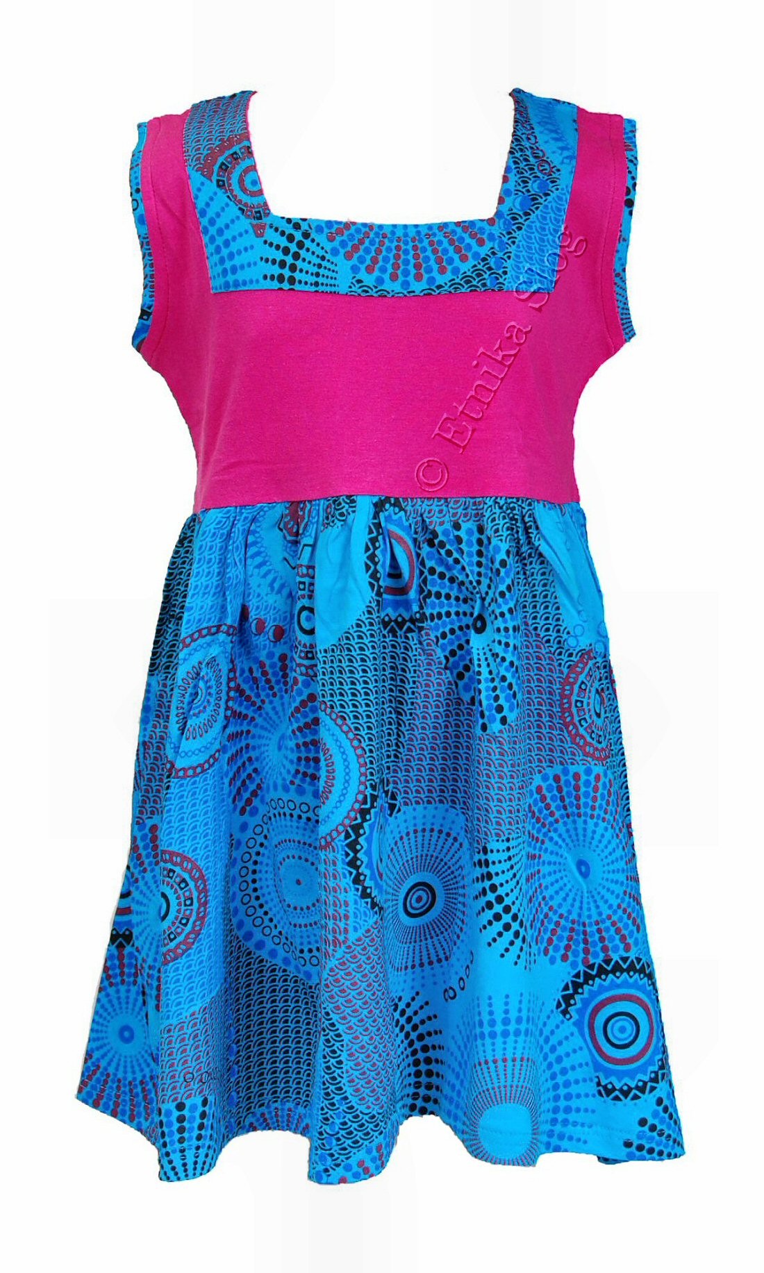 GIRLIE DRESS MADE OF COTTON, SLEEVELESS, UNICOLOR AND PRINTSAVAILABLE FOR AGES : 2 - 4 - 6 - 8 - 10 IN DIFFERENT COLORS.
