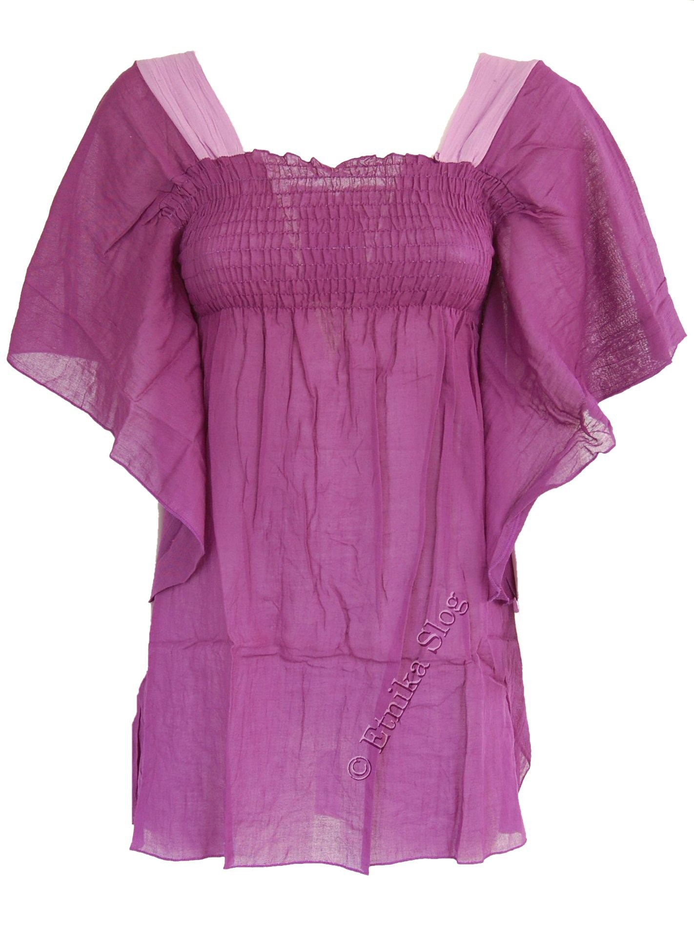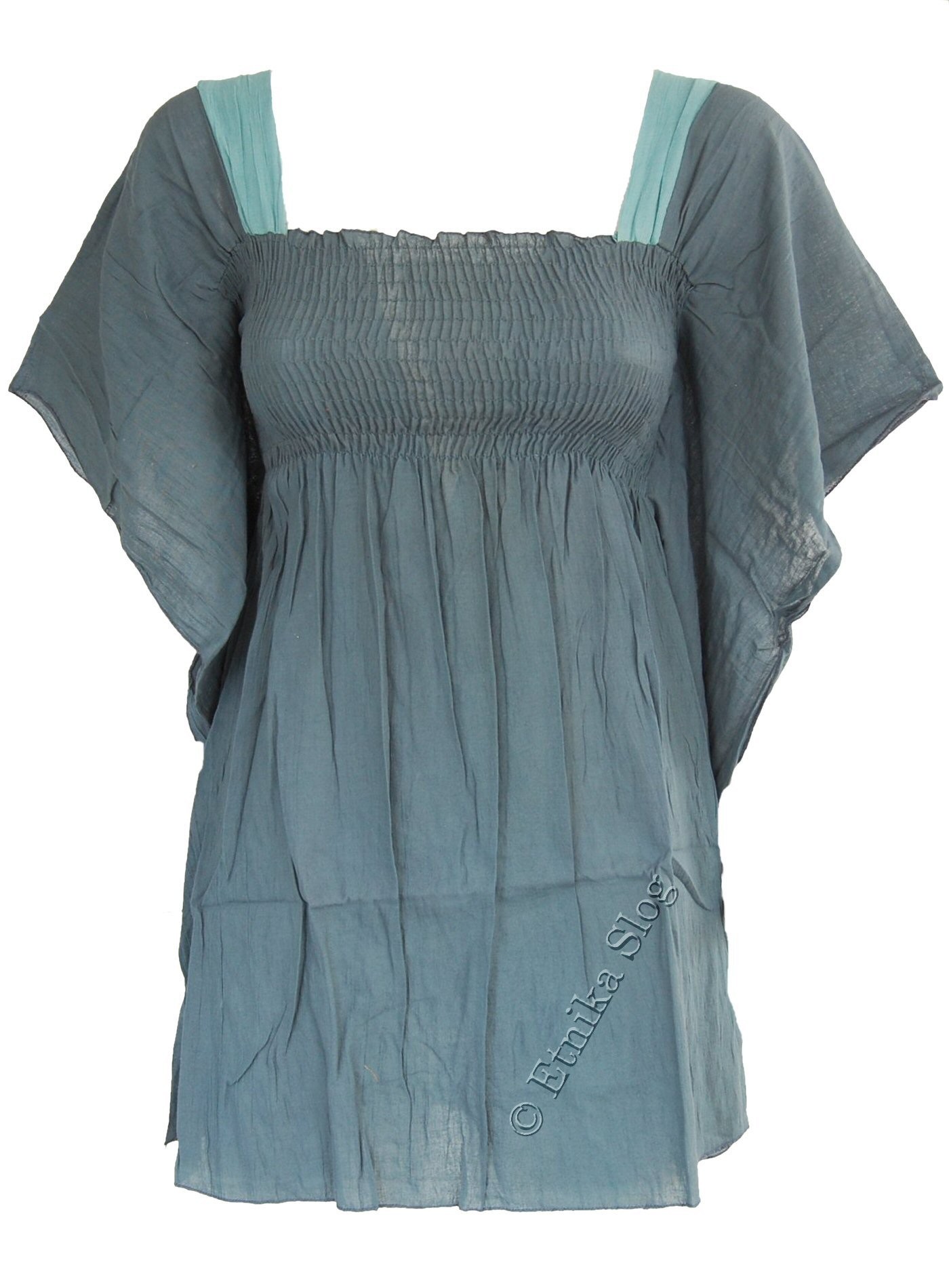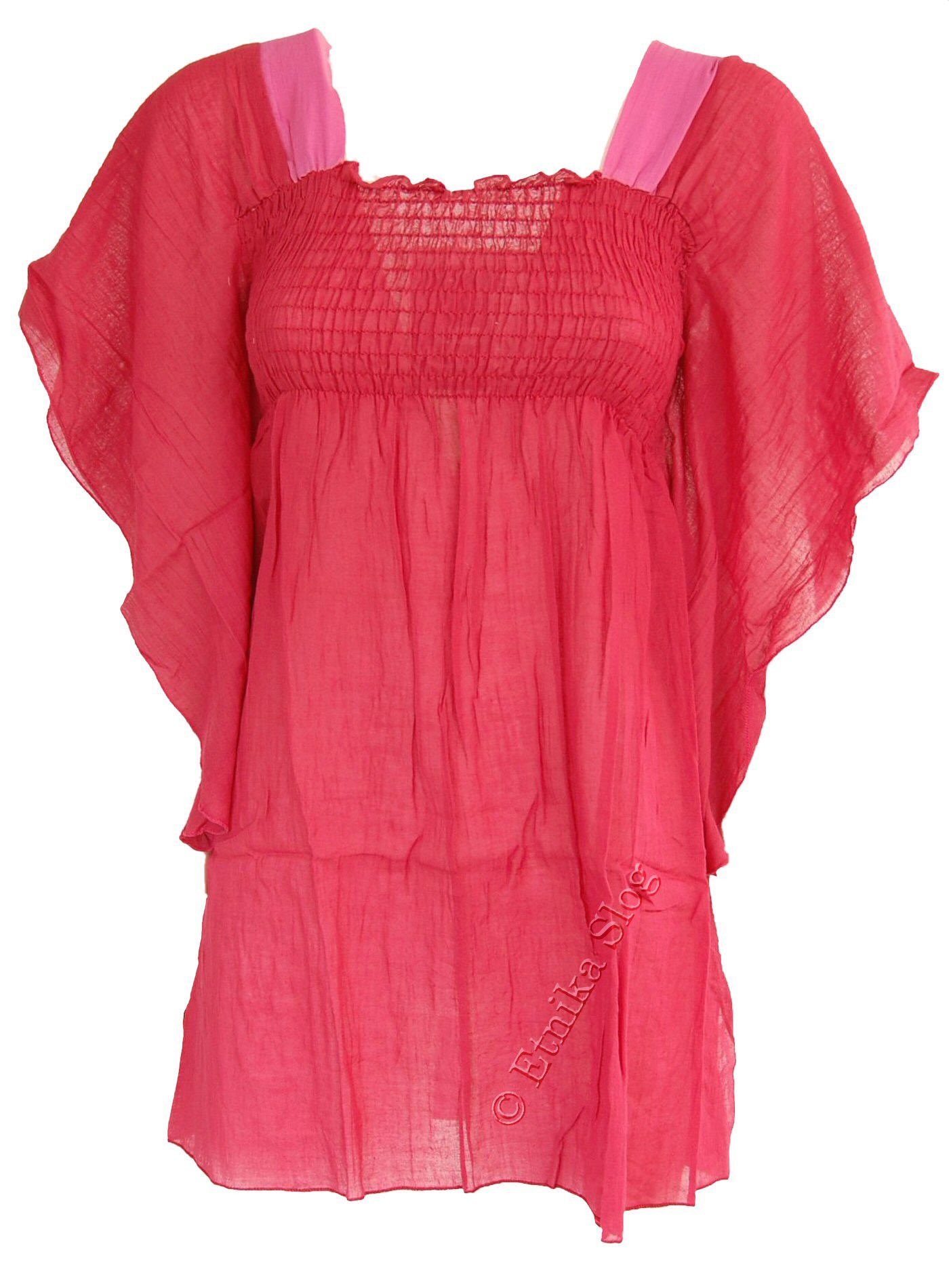 TOP IN LIGHT COTON,PLAIN COLOR WITH BUTTERFLY SLEEVE, ELASTIC BAND ON BREAST AND COLORED STRAPS.
