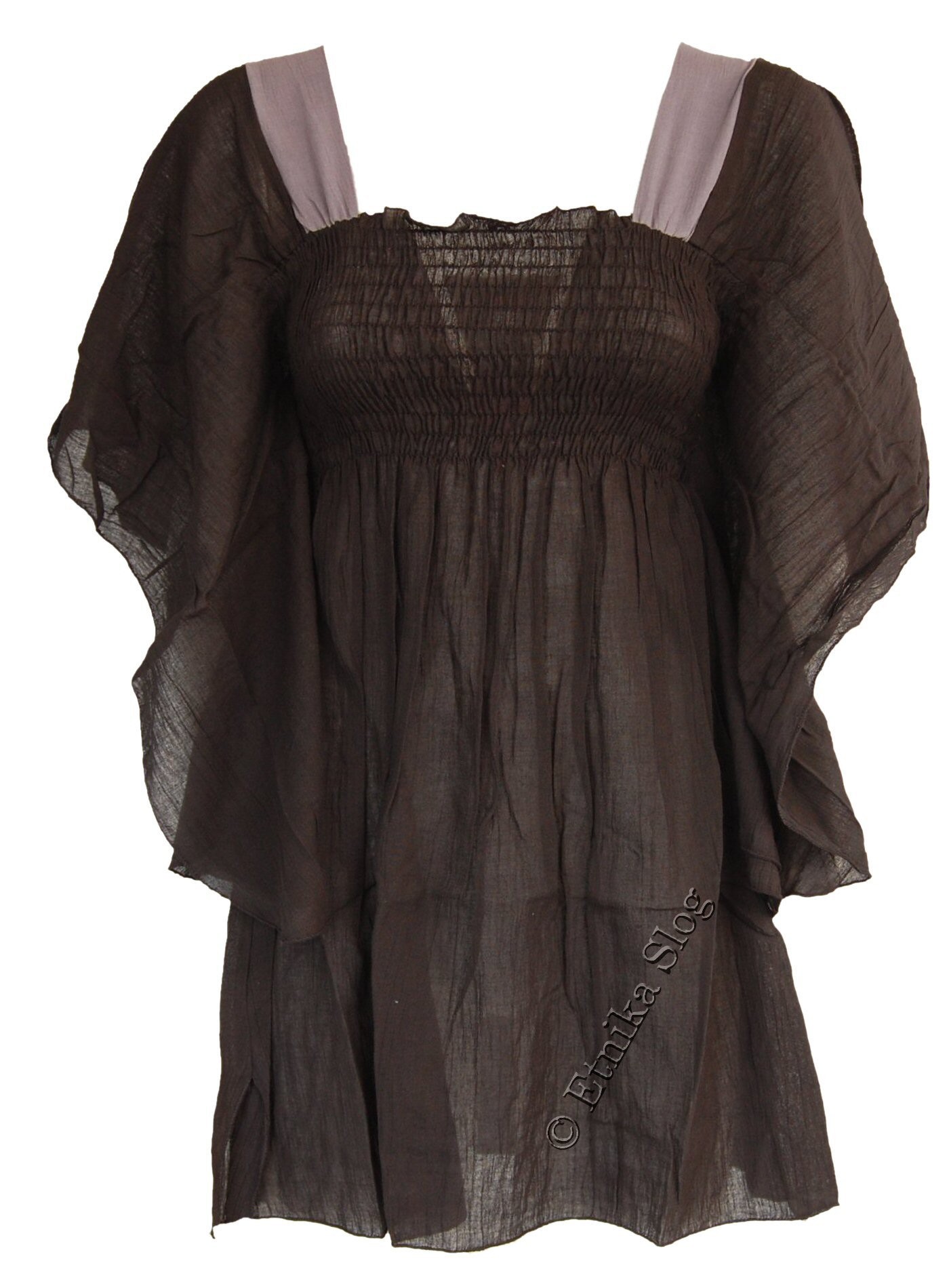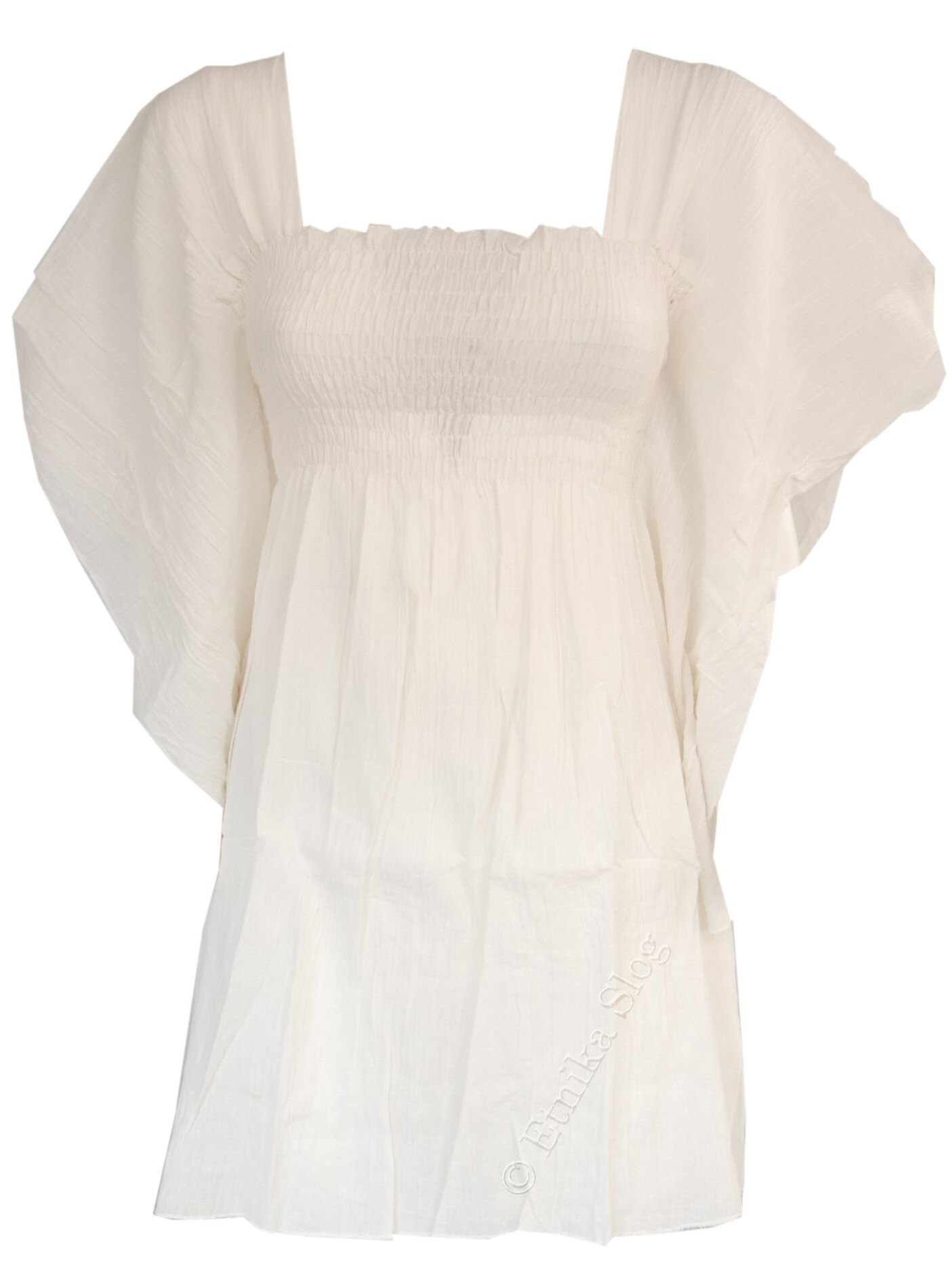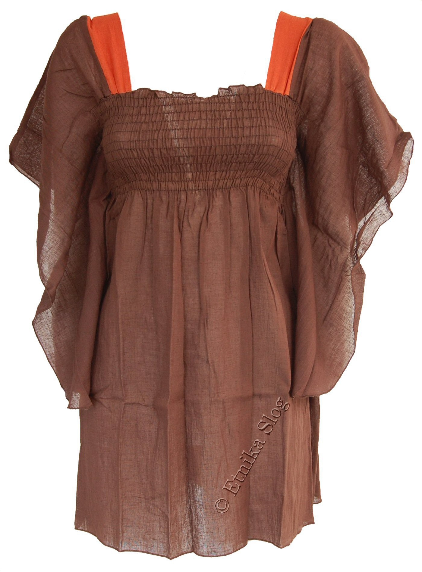 TOP IN LIGHT COTON,PLAIN COLOR WITH BUTTERFLY SLEEVE, ELASTIC BAND ON BREAST AND COLORED STRAPS.