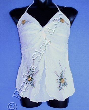 TOP DRESS IN COTTON, THIN SHOULDER STRAPS, WITH ELASTIC BAND ON THE BACK WITH EMROIDERED FLOWERS.
