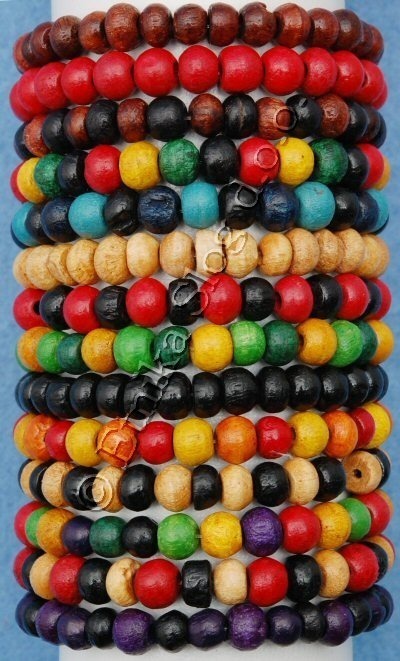 LONG ELASTIC NECKLACE WITH COLOURED WOODEN BALLS EITH DIAMETER 6 MM, DIAMETER 14 CM.