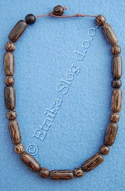 NECKLACE WITH SPHERES AND TUBE OF PALM WOOD, DIAMETER 1.3 CM, WITH ADJUSTABLE CLOSING, LENGTH 26 CM.