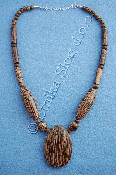 NECKLACE OF COCONUT WOOD, WITH VARIOUS COMPONENTS AND PENDANT, DIAMETER FROM 11 TO 17 MM, WITH ADJUSTABLE CLOSING HOOK, LENGTH 35 CM. QUANTITY MIN 2 PCS.