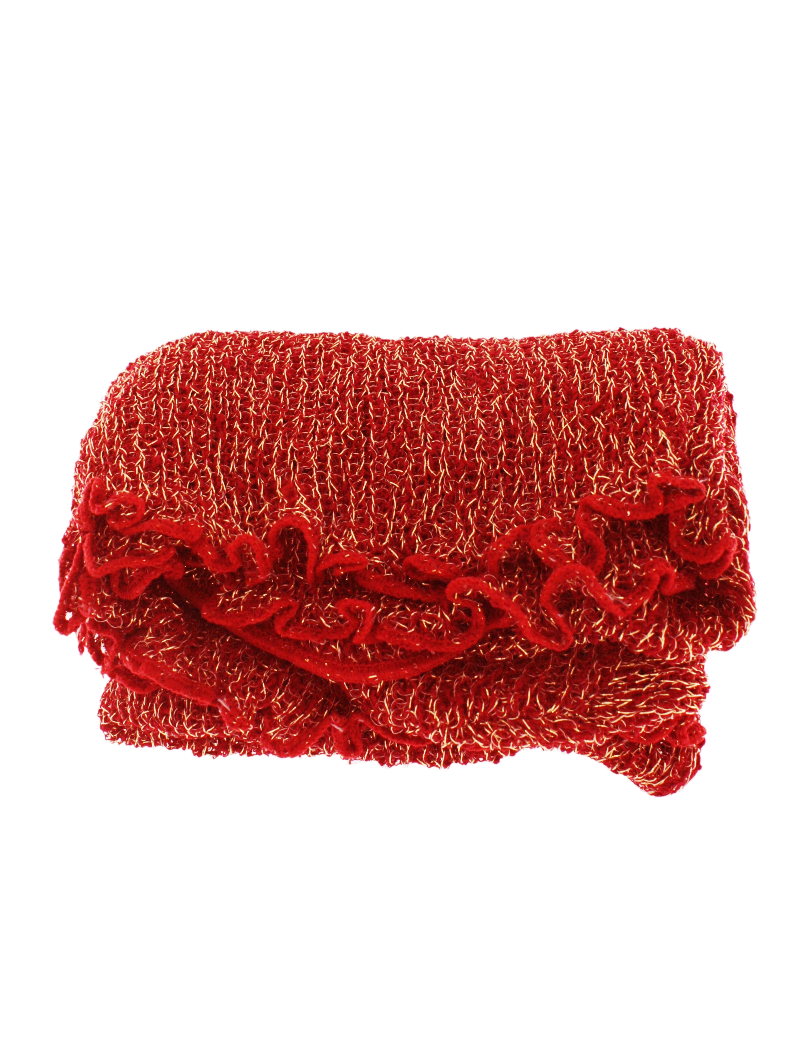 STRETCH PONCHO MADE OF VISCOSE, WITH GOLD LUREX FILAMENT, FISHNET PROCESSING.