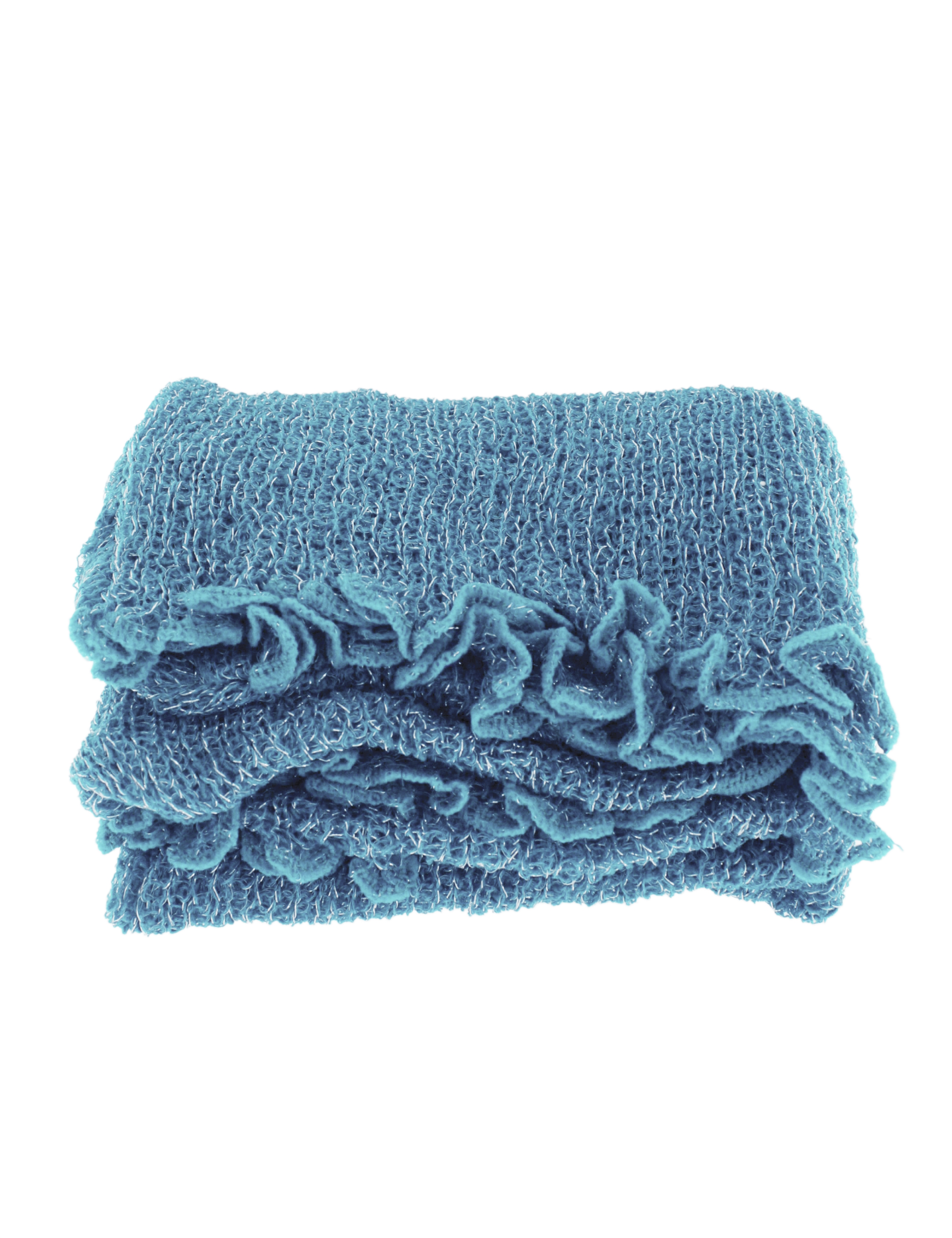 STRETCH PONCHO MADE OF VISCOSE, WITH SILVER LUREX FILAMENT, FISHNET PROCESSING.