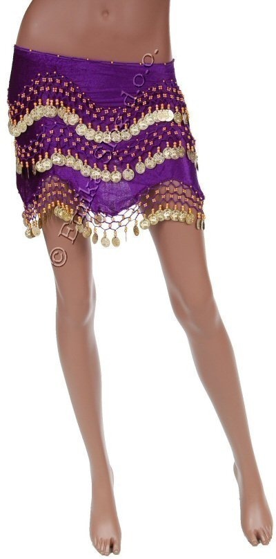 RECTANGULAR PAREO FOR BELLY DANCE MADE OF VELVET WITH 3 WAVE LINES WITH GOLD MEDALLIONS.