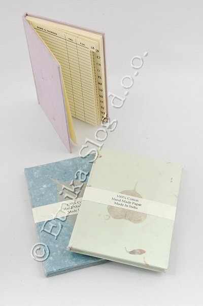 ADDRESS BOOK 14X19 CM PAPER 100% RECYCLED COTTON, HARD COVER. AVAILABLE IN A VARIETY OF COLOURS. MINIMUM QUANTITY 2 PCS. IN ASSORTED COLOURS.