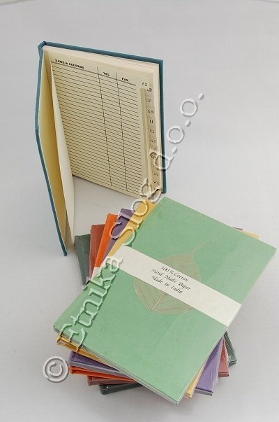 ADDRESS BOOK 15,5X22,5 CM PAPER 100% RECYCLED COTTON, HARD COVER. AVAILABLE IN A VARIETY OF COLOURS. MINIMUM QUANTITY 2 PCS. IN ASSORTED COLOURS.