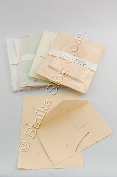 10 ENVELOPES 16.5X10.5 CM + 10 SHEETS 15X21 CM FOLDED, PAPER 100% RECYCLED COTTON. AVAILABLE IN DIFFERENT COLOURS. MINIMUM QUANTITY 3 PACKETS IN ASSORTED COLOURS.