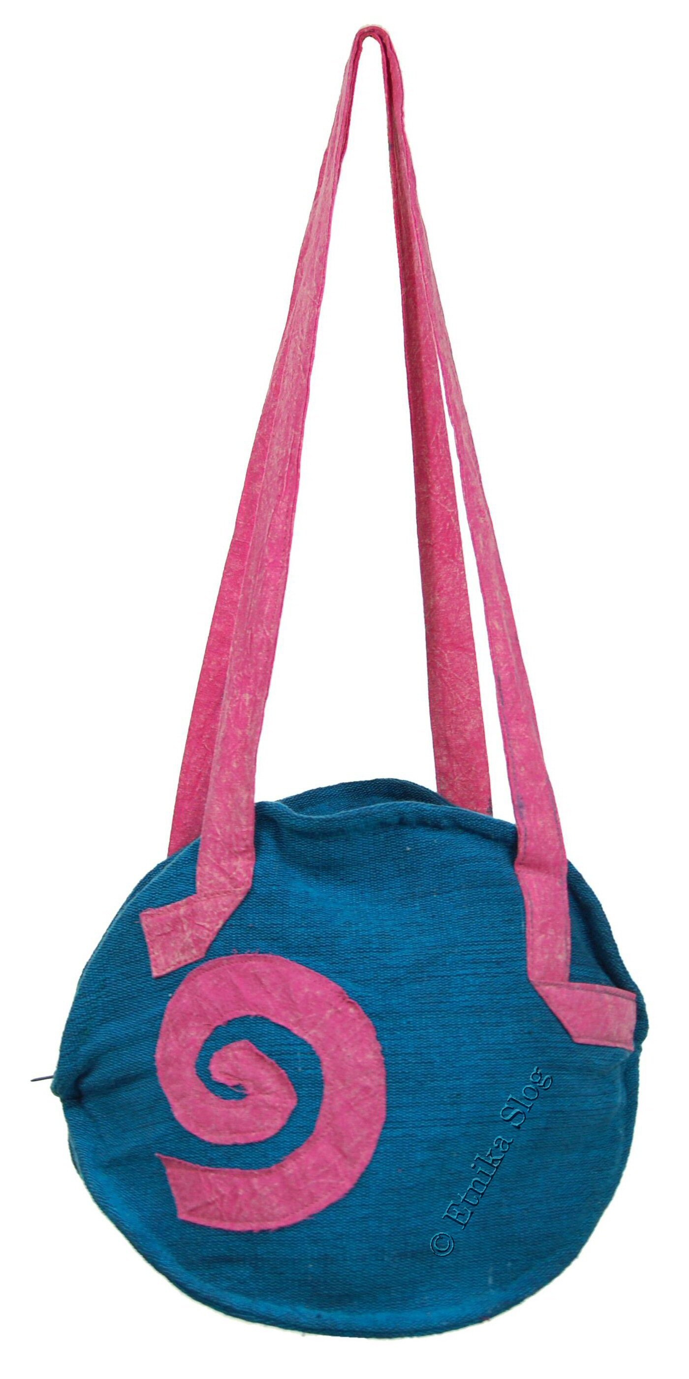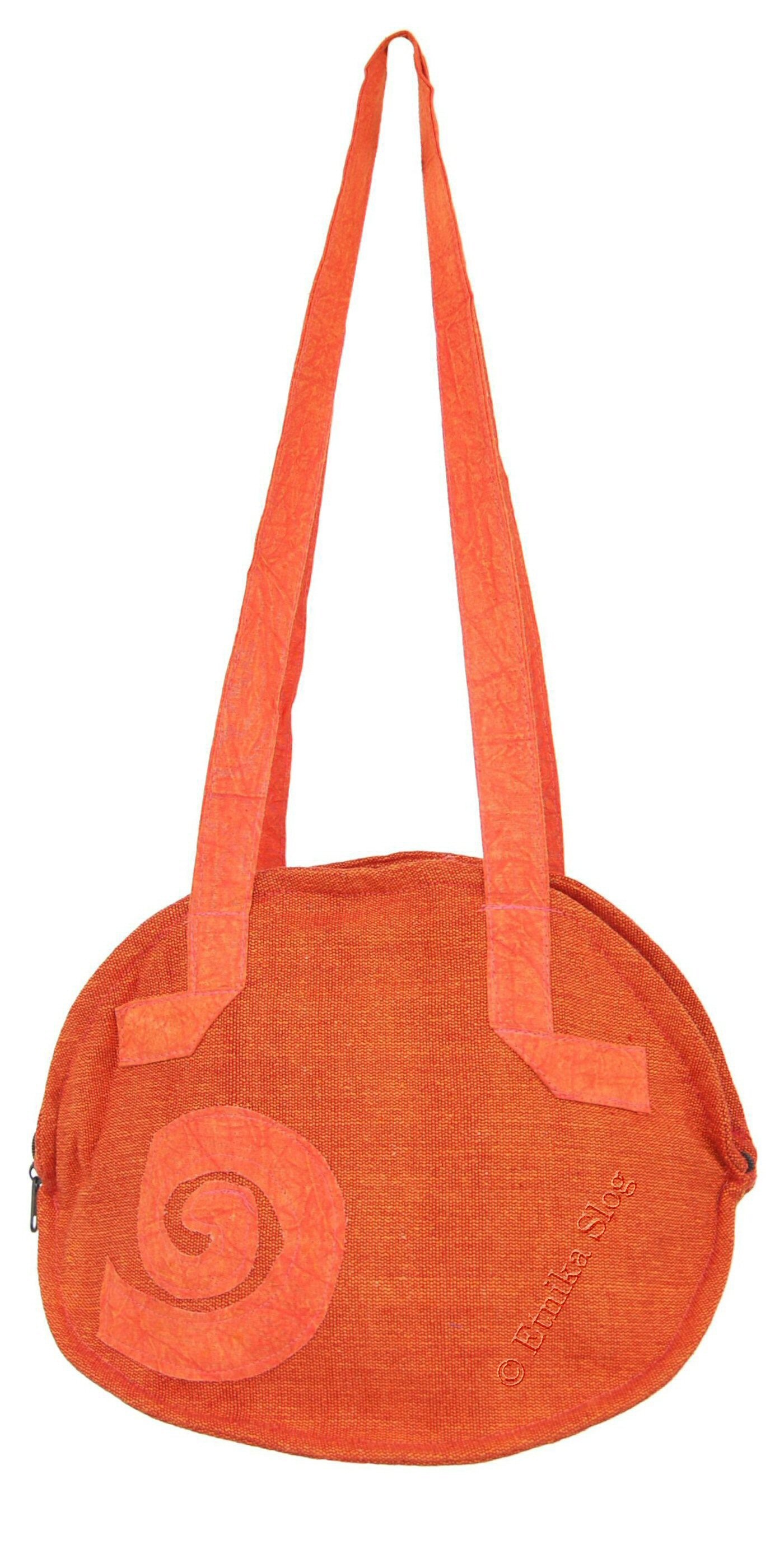 SMALL SHOULDER BAG MADE OF COTTON, WITH SEWN SPIRAL ON IT.