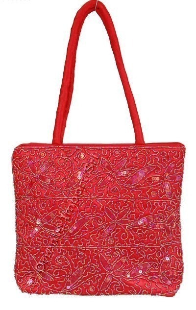 SHOULDER BAG IN SATIN WITH BEADS AND SEQUINS.