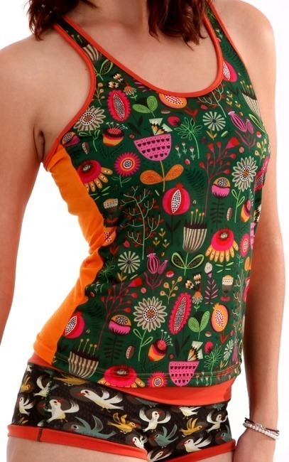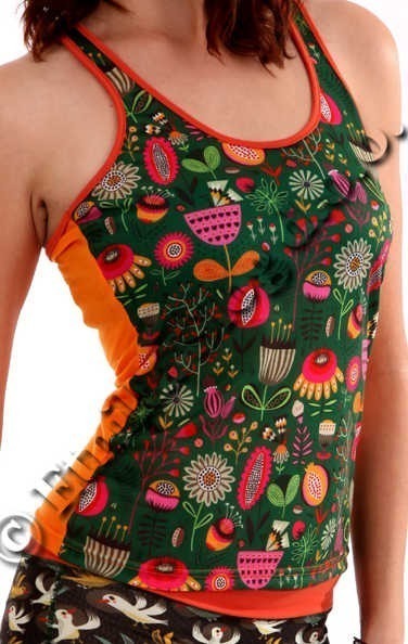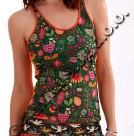 TOP AND KNICKERS MADE OF POLYESTER, SLEEVELES, WITH PRINTS ON THE FRONT.