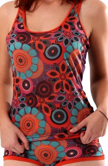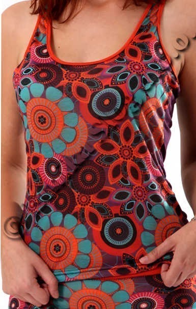 TOP AND KNICKERS MADE OF POLYESTER, SLEEVELES, WITH PRINTS ON THE FRONT, FANTASY FLOWERS.