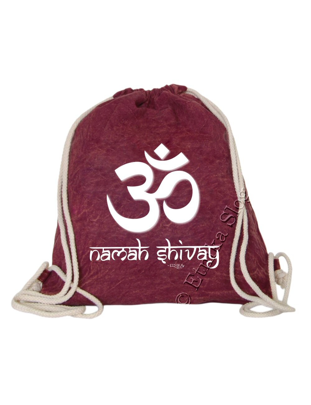 BAGGY BACKPACK MADE OF COTTON, STONEWASHED WITH PRINTED MOTIVE OF OM NAMAH SHIVAYA. SIZE OF THE BACKPACK APPROX. 35x36x8 CM.