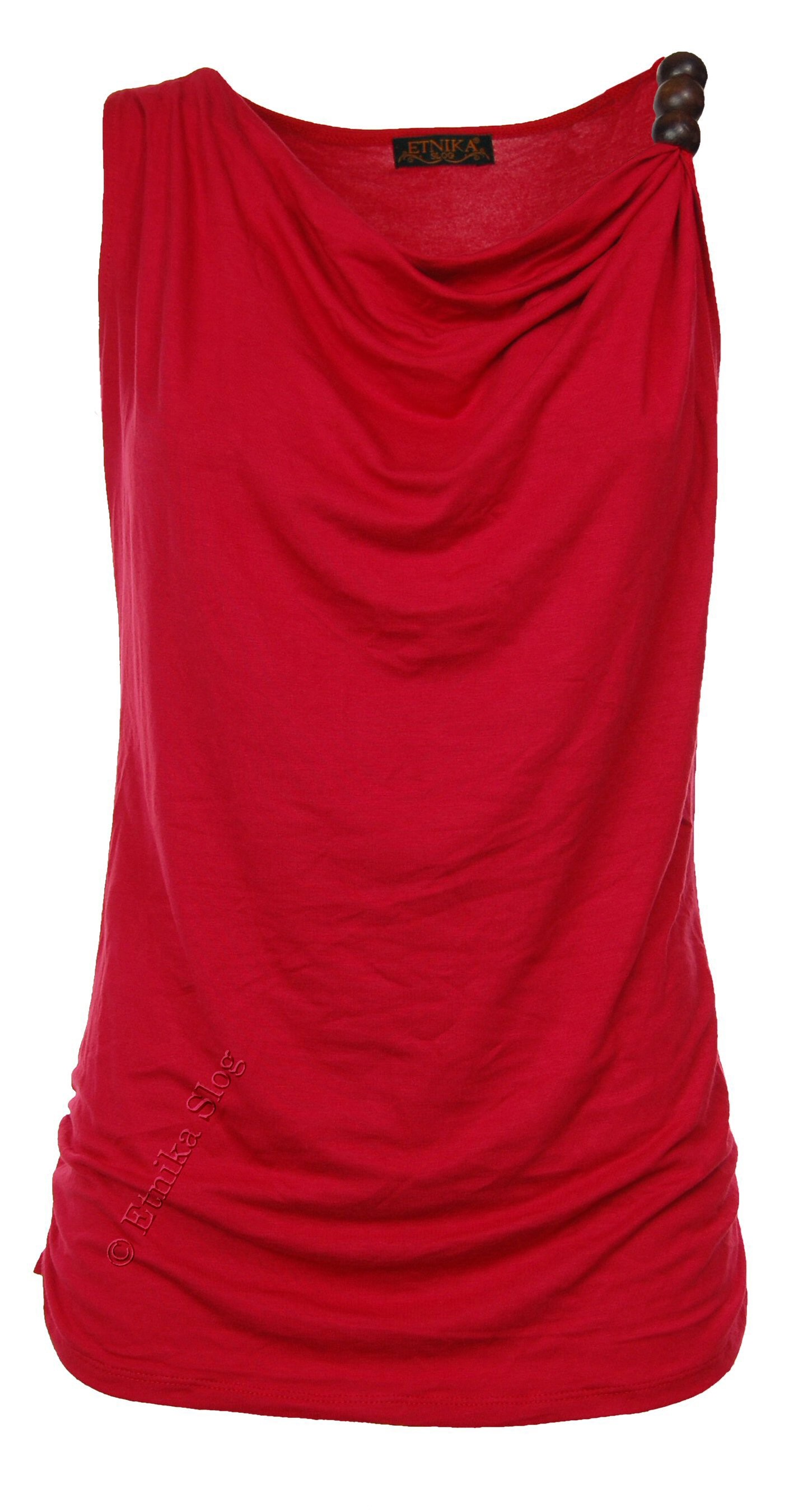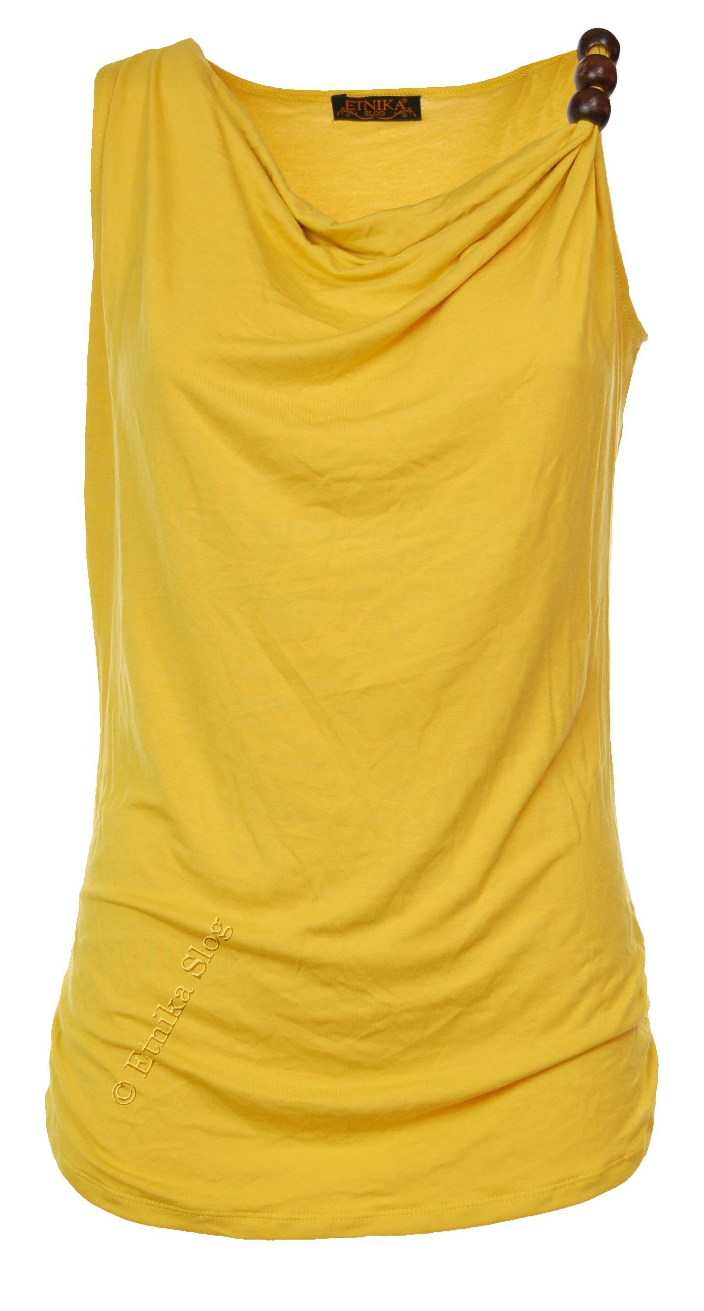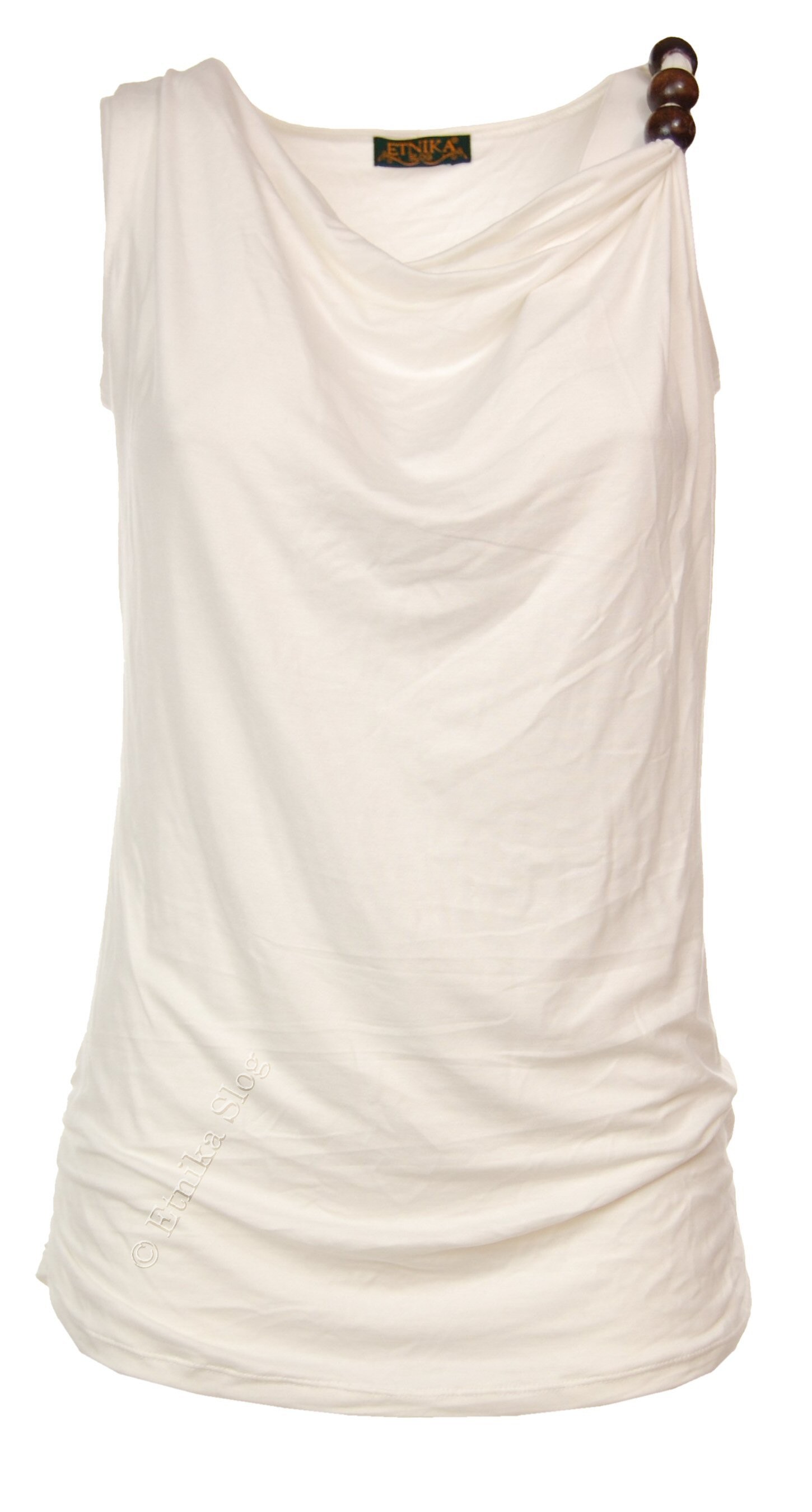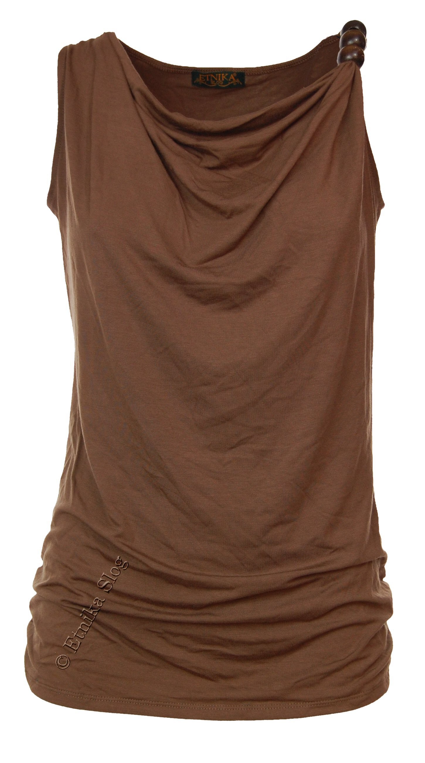 TOP MADE OF COTTON, VISCOSE AND ELASTANE, DROPPED NECKLINE AND 3 WOODEN BEADS AT ONE STRAP.