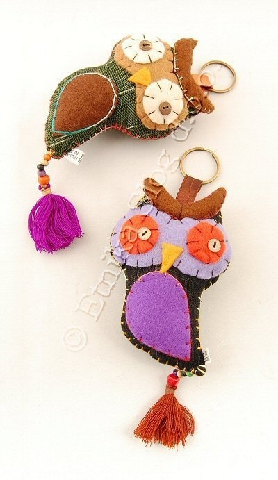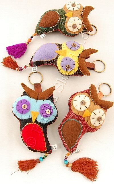 PORTDISACHIAVI A FORMA DI GUFO REALIZZATO CON TESSUTO RICUCITO, DIMENSIONI 12X8 CM.
