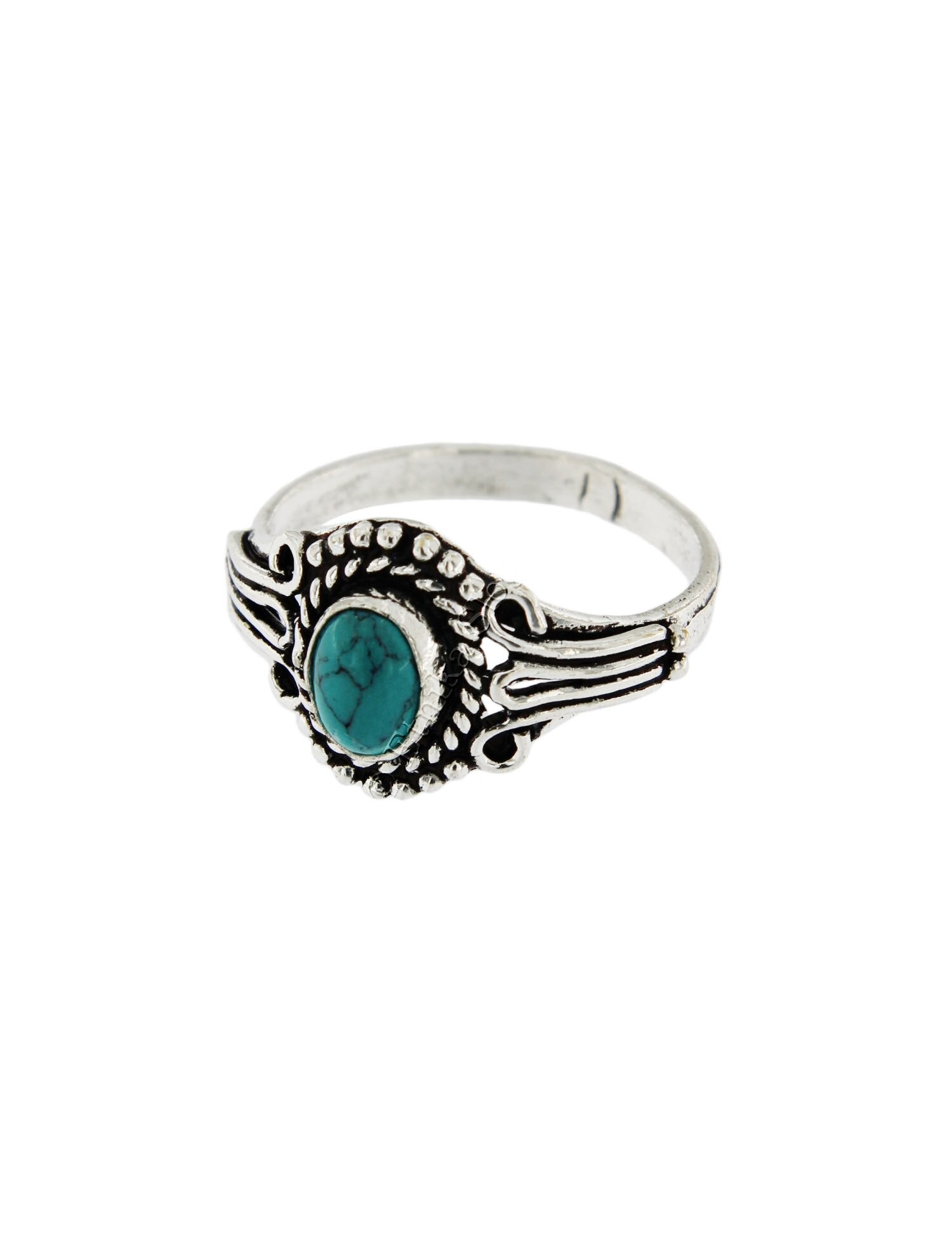 ANELLO IN METALLO BIANCO LAVORATO CON PIETRA DURA.