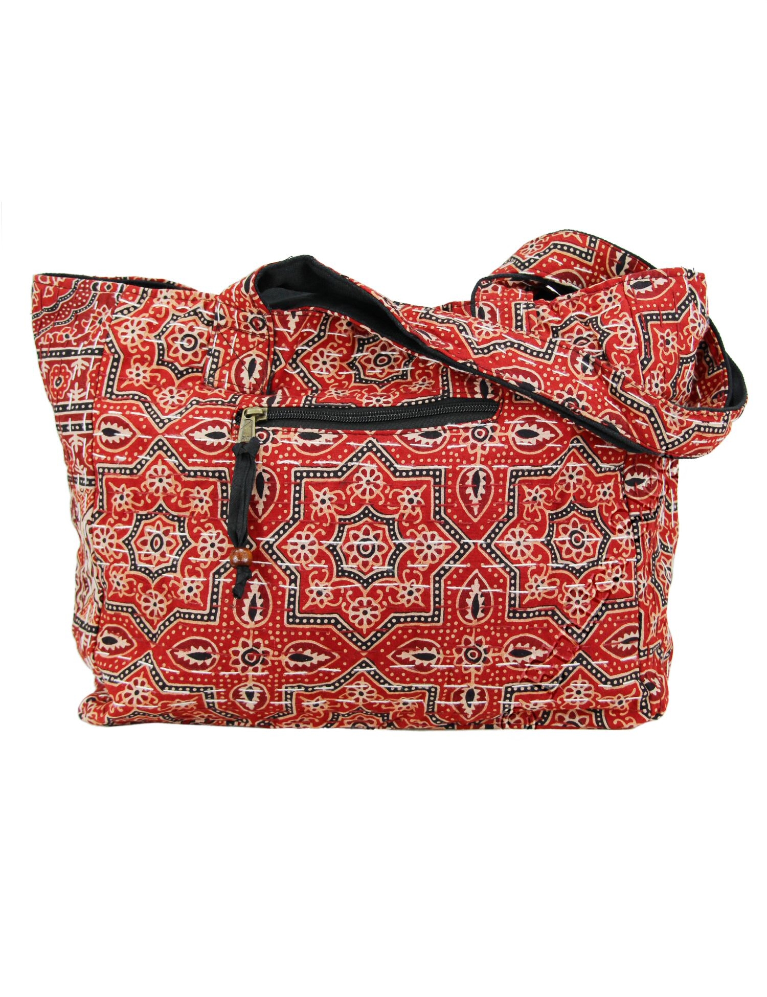BORSA GRANDE DA SPALLA IN COTONE STAMPATO CON RICUCITURE BIANCHE , FONDO ALLARGATO, 2 MANICI.
