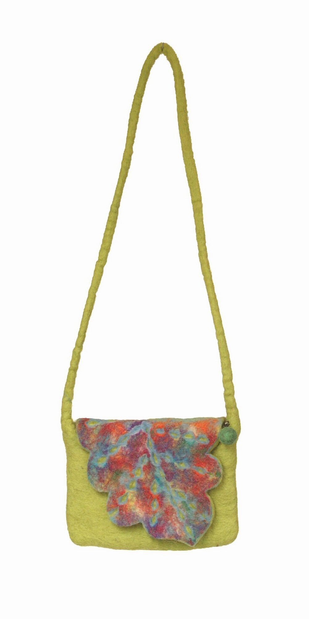 BORSA DA SPALLA IN LANA COTTA, RIBALTA CON FOGLIA,
