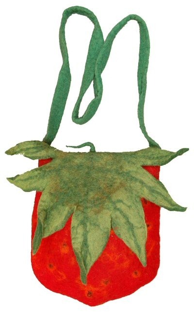 BORSA IN LANA COTTA DA SPALLA A FORMA DI FRAGOLA. CHIUSURA CON CERNIERA.