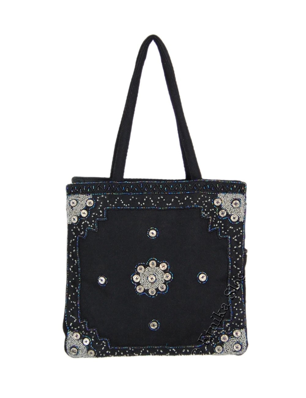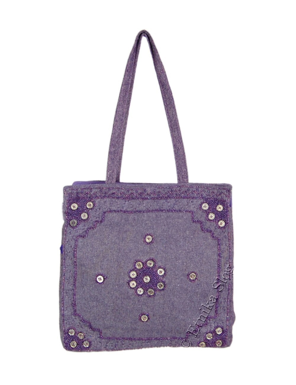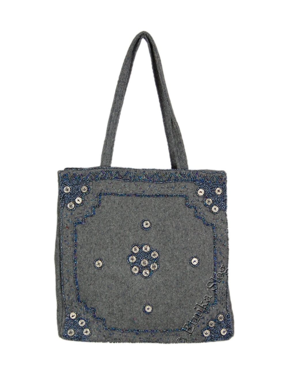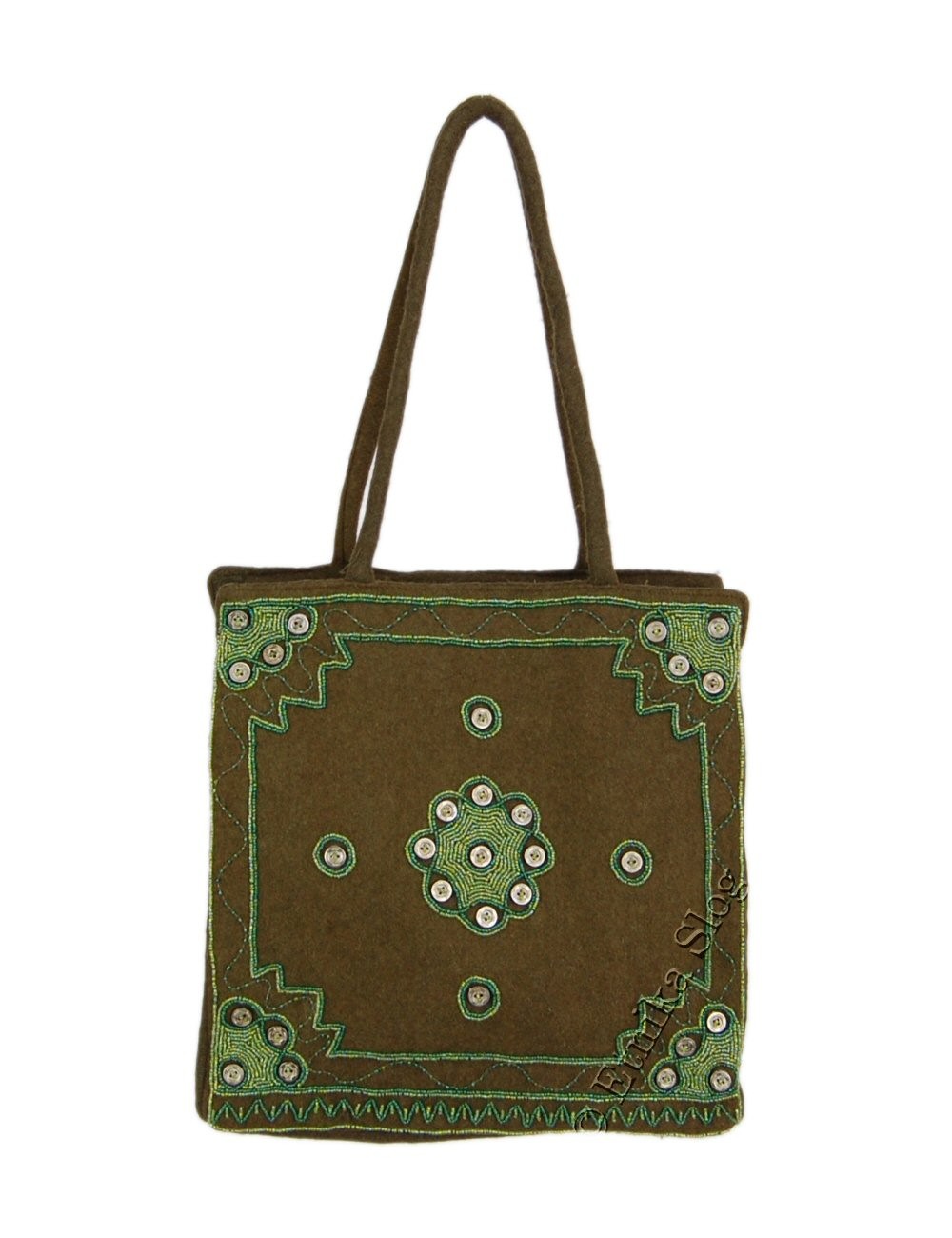 BORSA DA SPALLA IN LANA COTTA, RICAMATA CON PERLINE E PAILETTE, FONDO ALLARGATO E