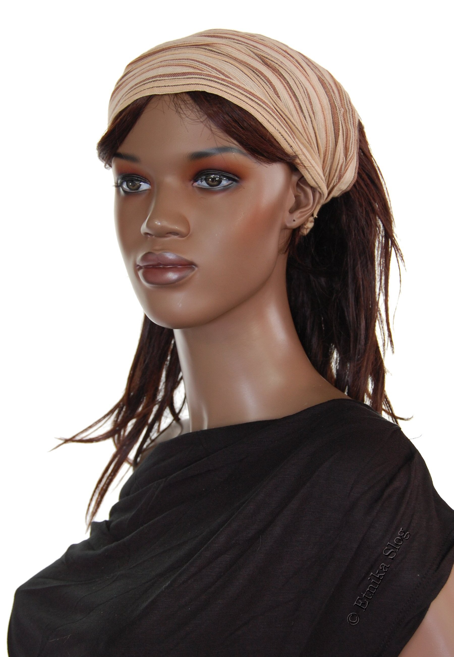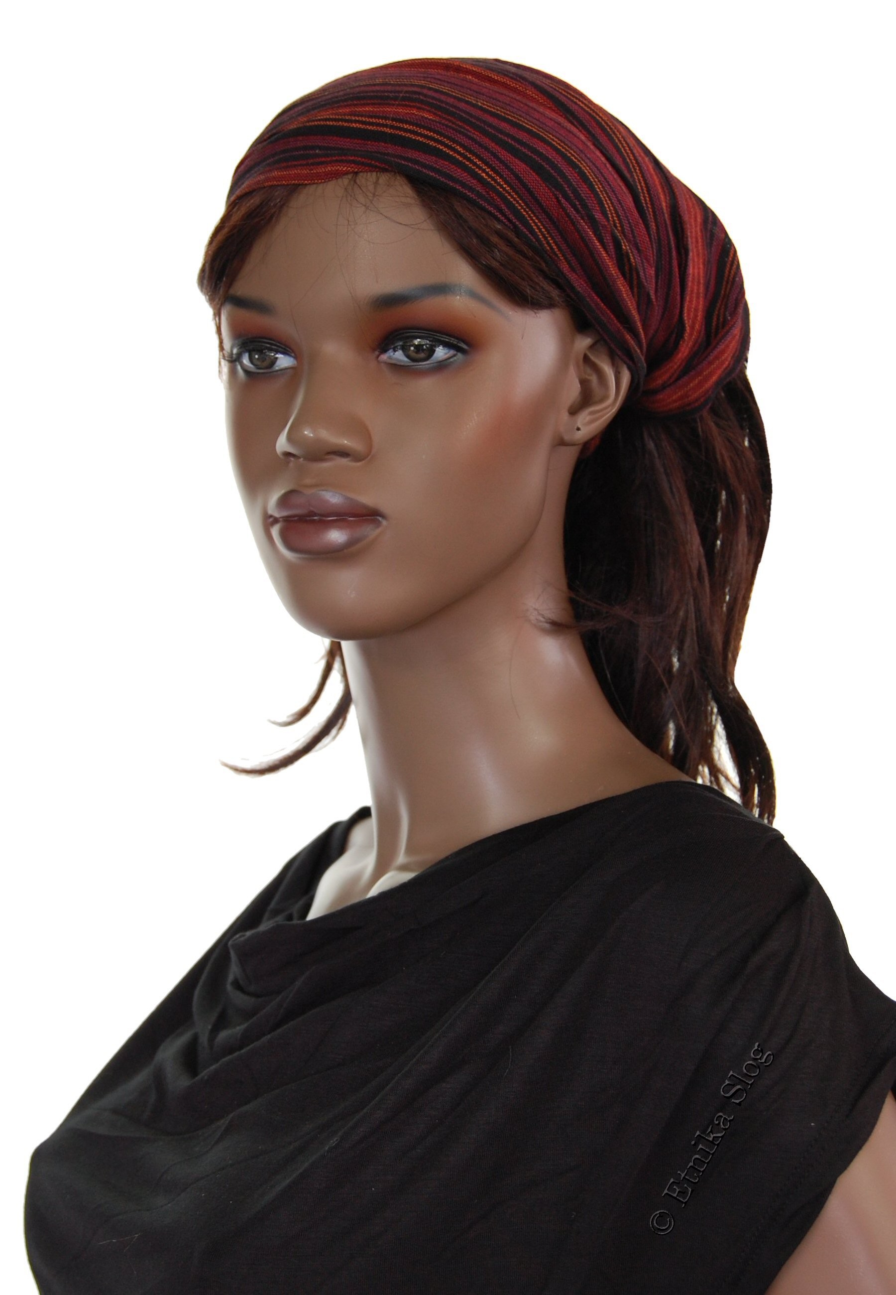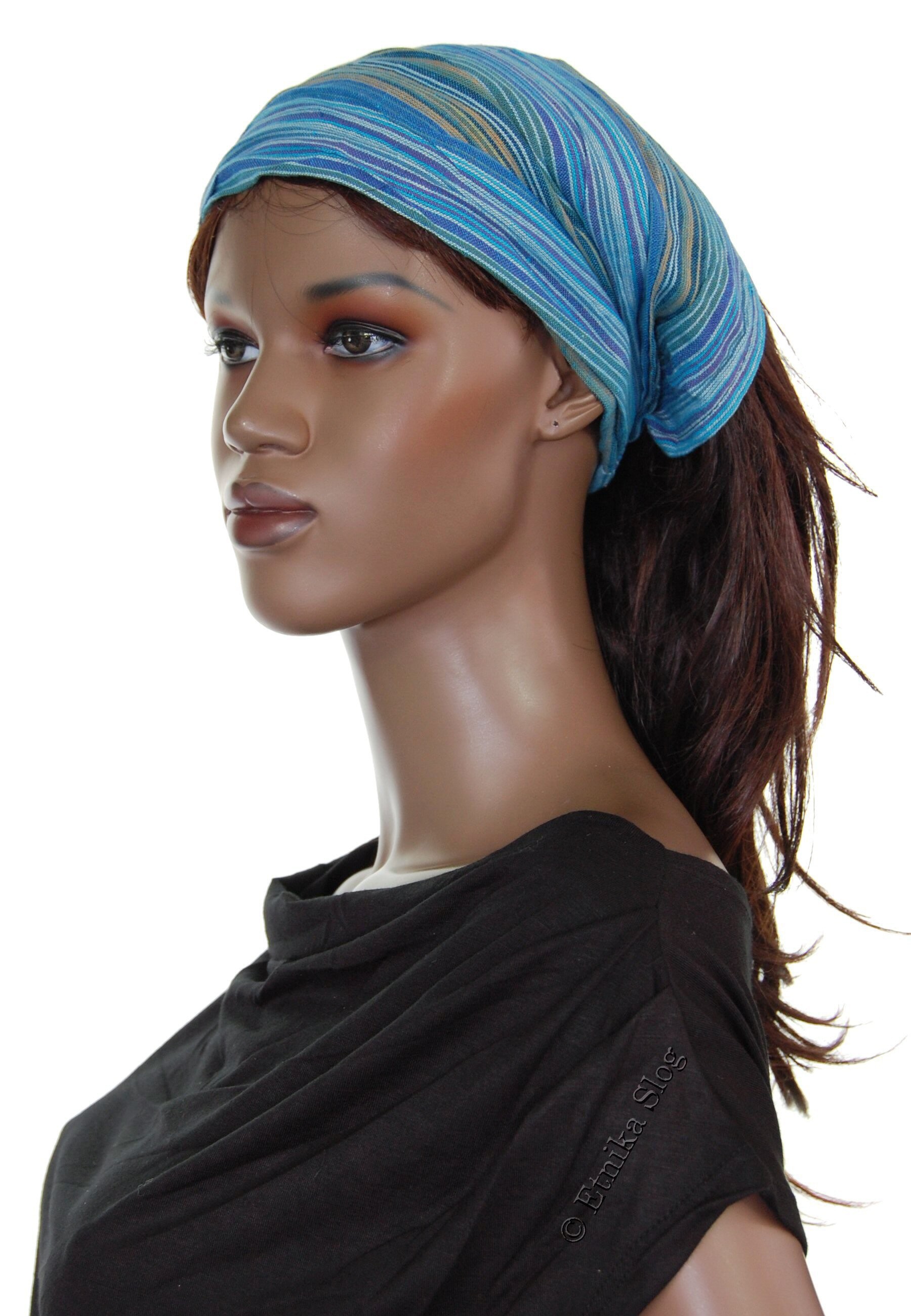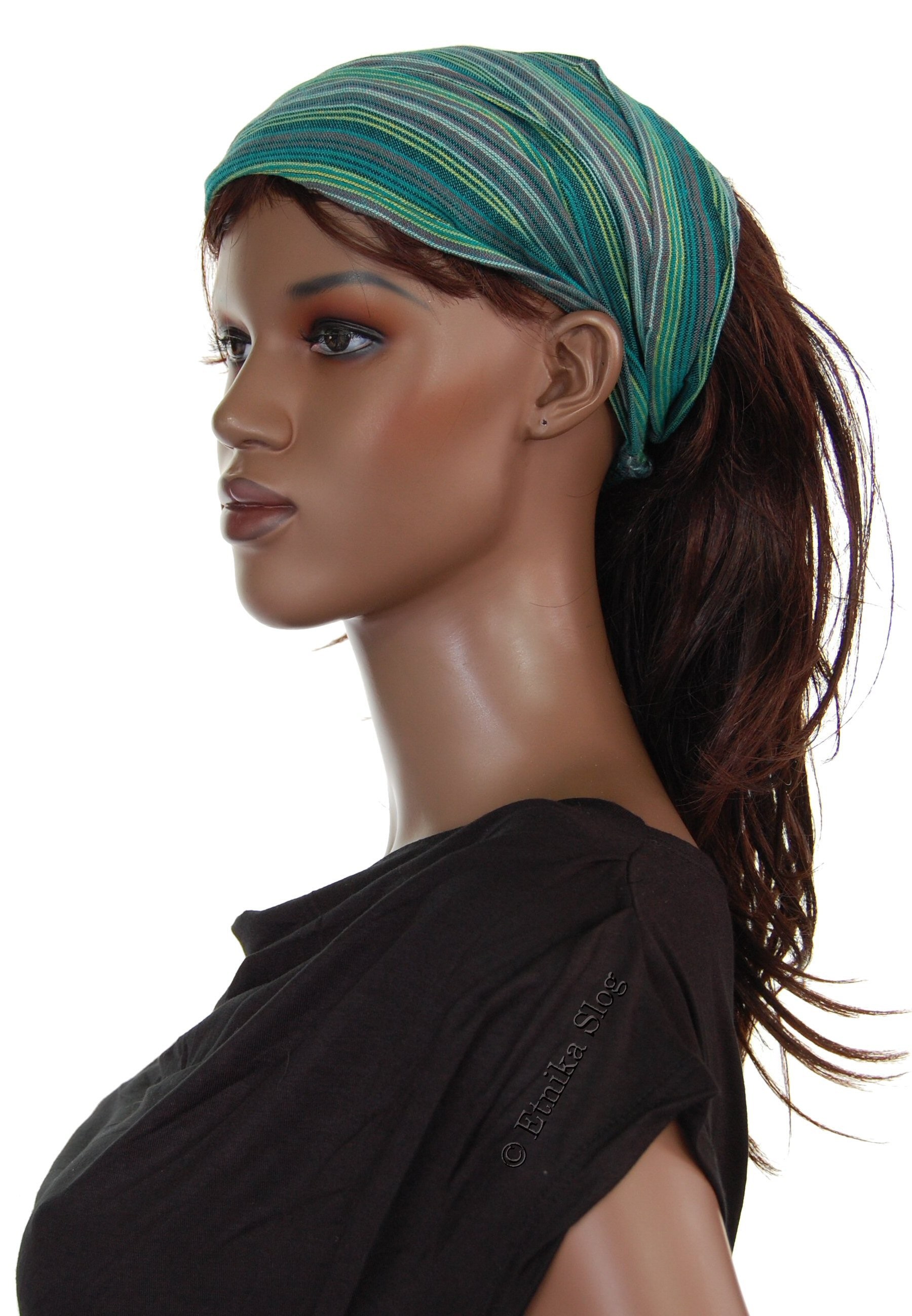 FASCIA PER CAPELLI IN COTONE, A RIGHE TIPO BANDANA, CON ELASTICO DIETRO. QUANTITA MINIMA 2 PZ - COLORI ASSORTITI.