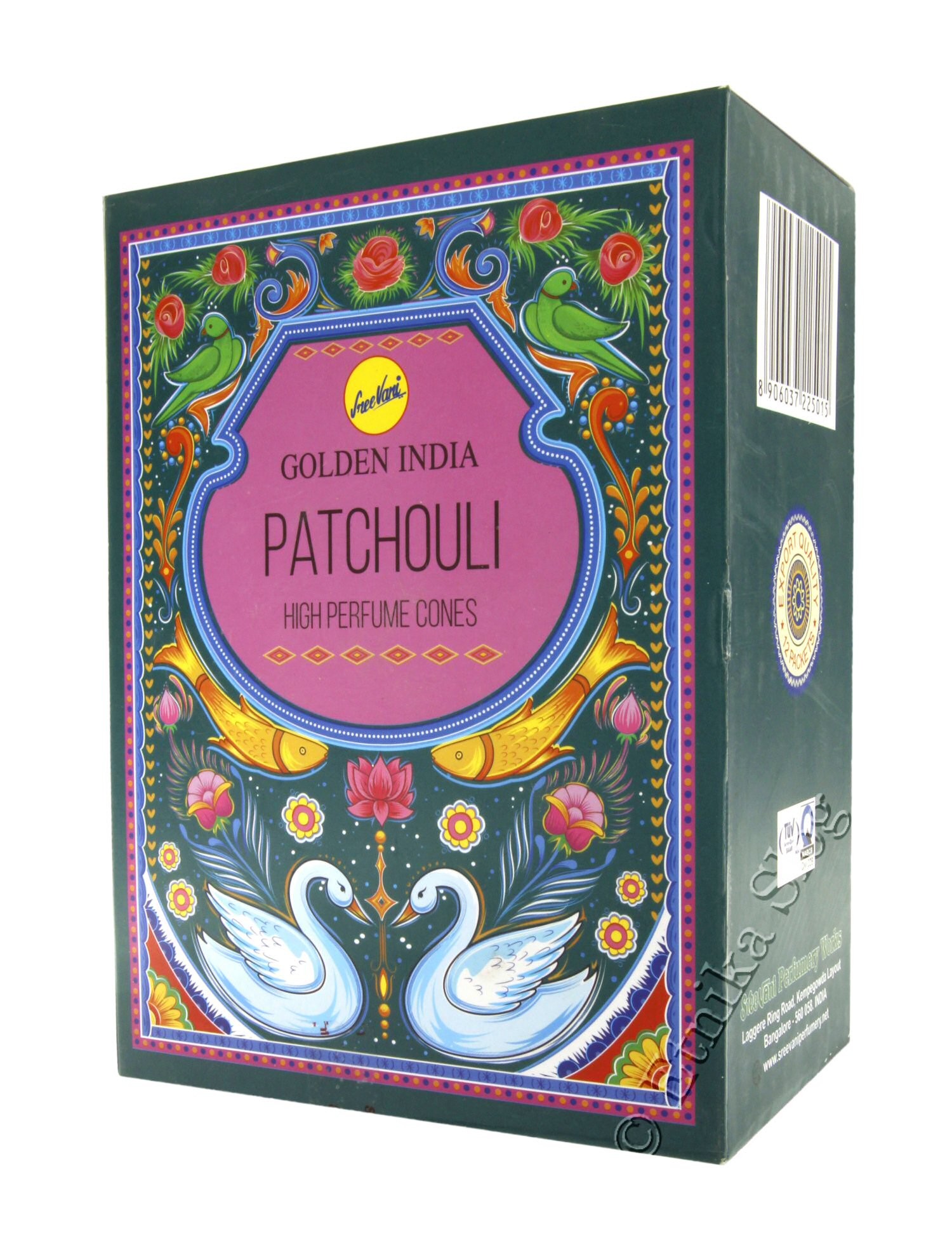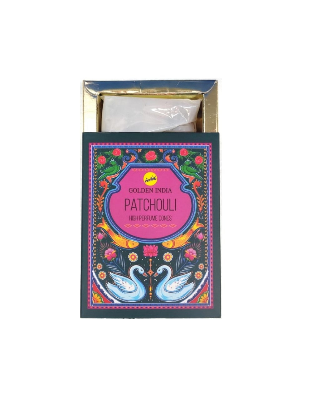 INCENSO A CONO BACKFLOW MARCA SREE VANI GOLDEN INDIA.FRAGRANZA PATCHOULI.OGNI SCATOLA CONTIENE 12 PACCHETTI DA 10 CONI.