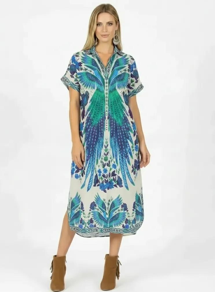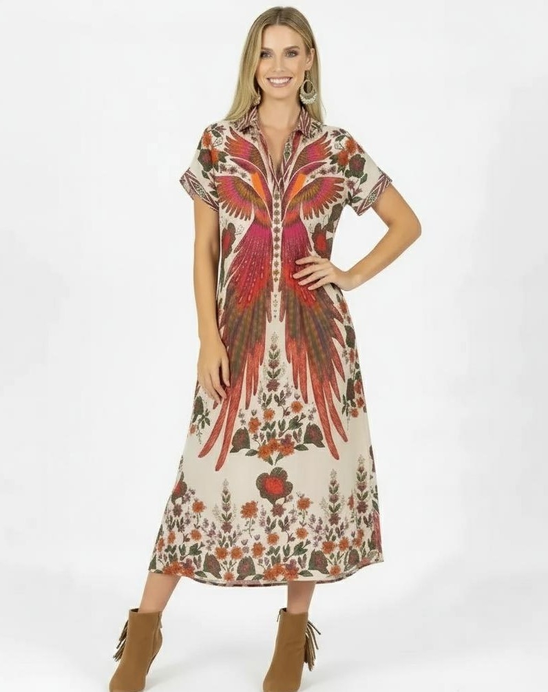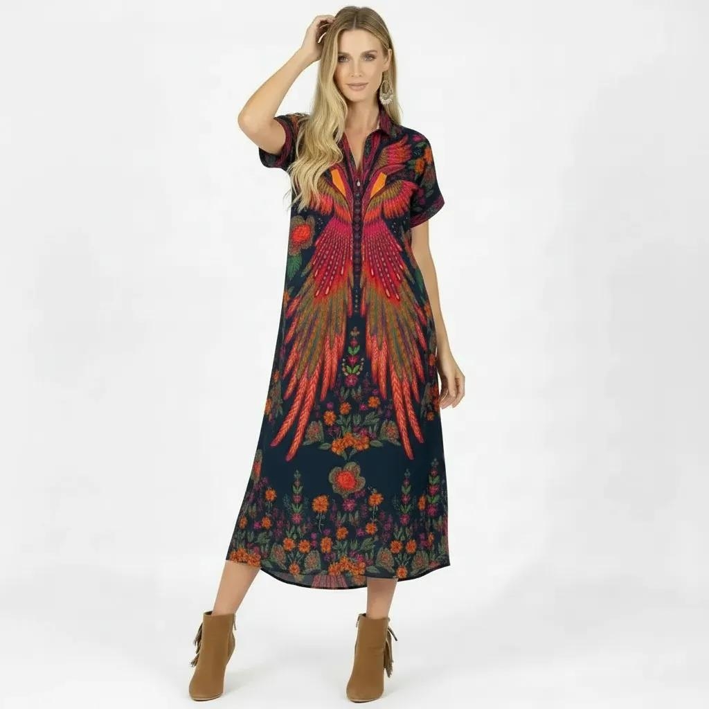 VESTITO LUNGO INDIANO IN FIOCCO DI COTONE MORBIDO E LEGGERO STAMPATO.