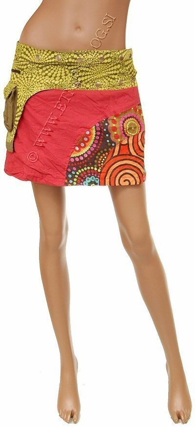 MINI GONNA IN COTONE LEGGERO, FANTASIE MISTE, CON MARSUPIO.