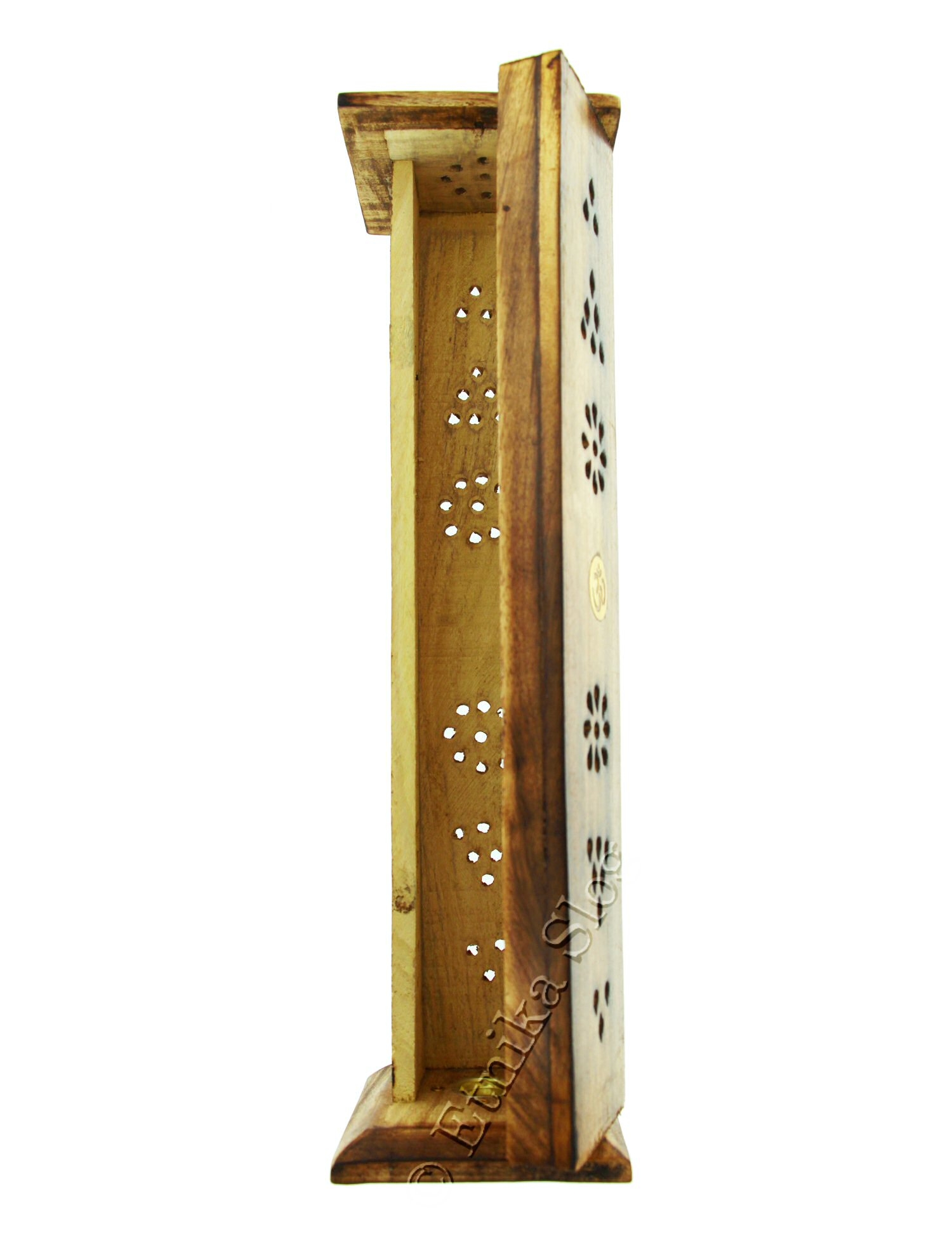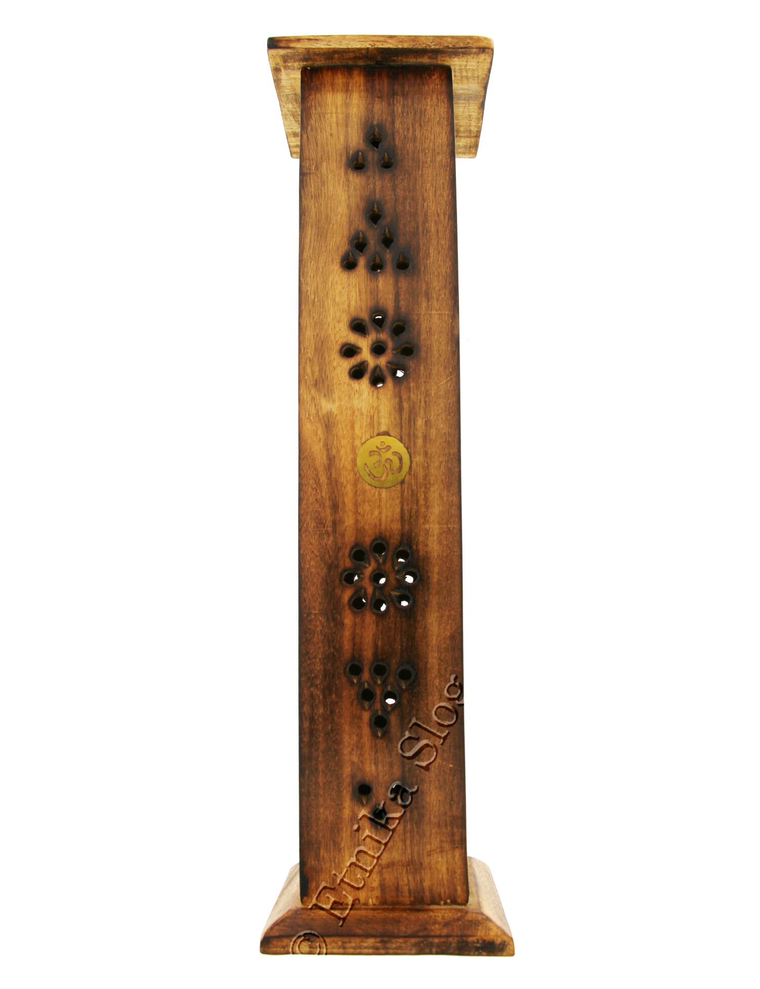 PORTA INCENSO A COLONNA IN LEGNO TRAFORATO, APERTA, QUADRATA.