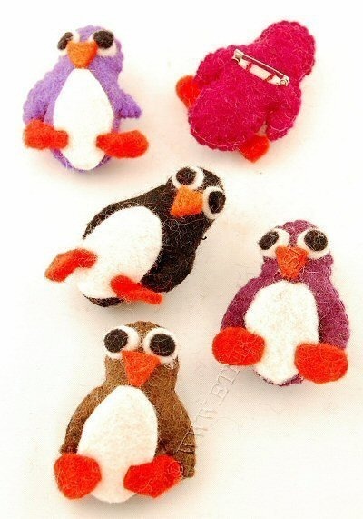 SPILLA IN LANA COTTA.MOTIVO PINGUINO.DISPONIBILE IN VARI COLORI.QUANTITA MINIMA 5 PZ - COLORI ASSORTITI.