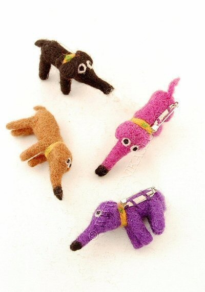 SPILLA IN LANA COTTA,MOTIVO BASSOTTO CON COLLARE. QUANTITA MINIMA 5PZ - COLORI ASSORTITI.