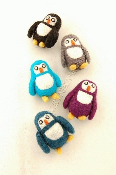 SPILLA IN LANA COTTA,MOTIVO PINGUINO.DISPONIBILE IN VARI COLORI.QUANTITA MINIMA 5PZ - COLORI ASSORTITI.