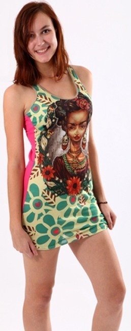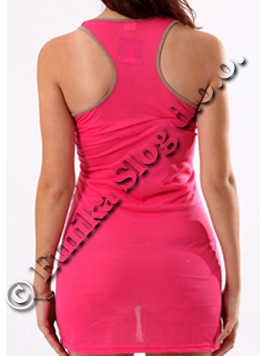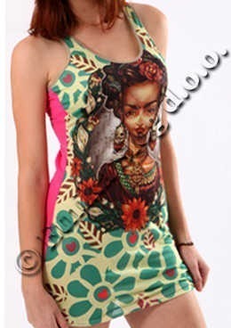 CANOTTA LUNGA IN POLIESTERE, CON STAMPA IN FRONTE, SENZA CORTE.