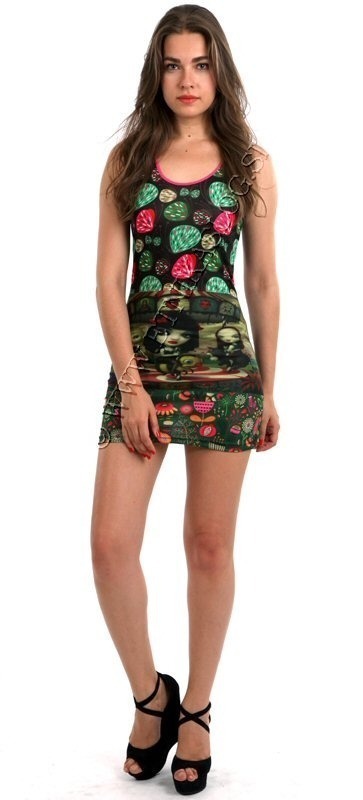 CANOTTA LUNGA IN POLIESTERE, CON STAMPA IN FRONTE, SENZA CORTE.