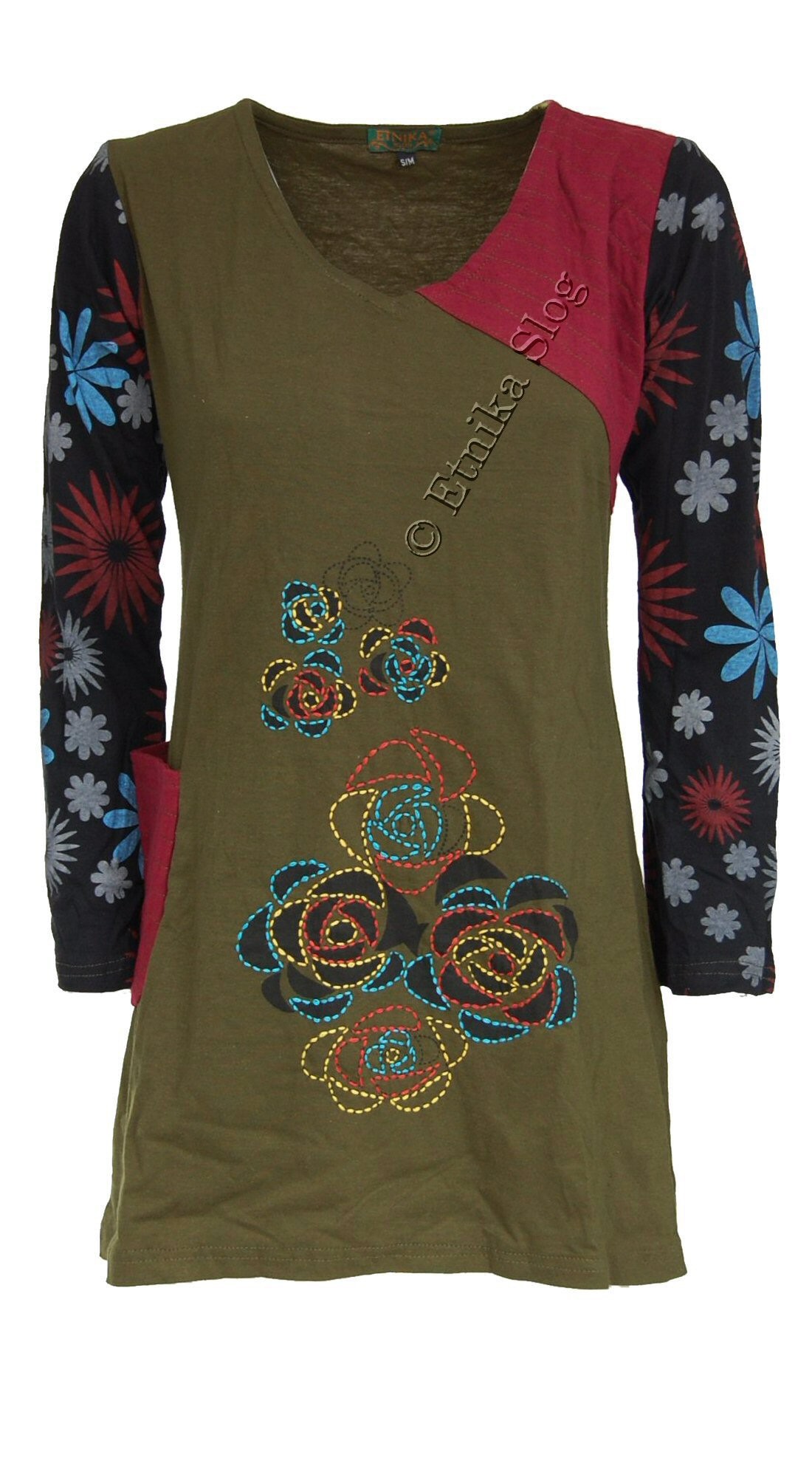 VESTITO IN COTONE CON MANICHE LUNGHE, CON STAMPE, RICAMI E SCOLLO ROTONDO. DISPONIBILE NELLE TAGLIE S/M E L/XL IN 4 COLORIQUANTITA MINIMA 1 PZ