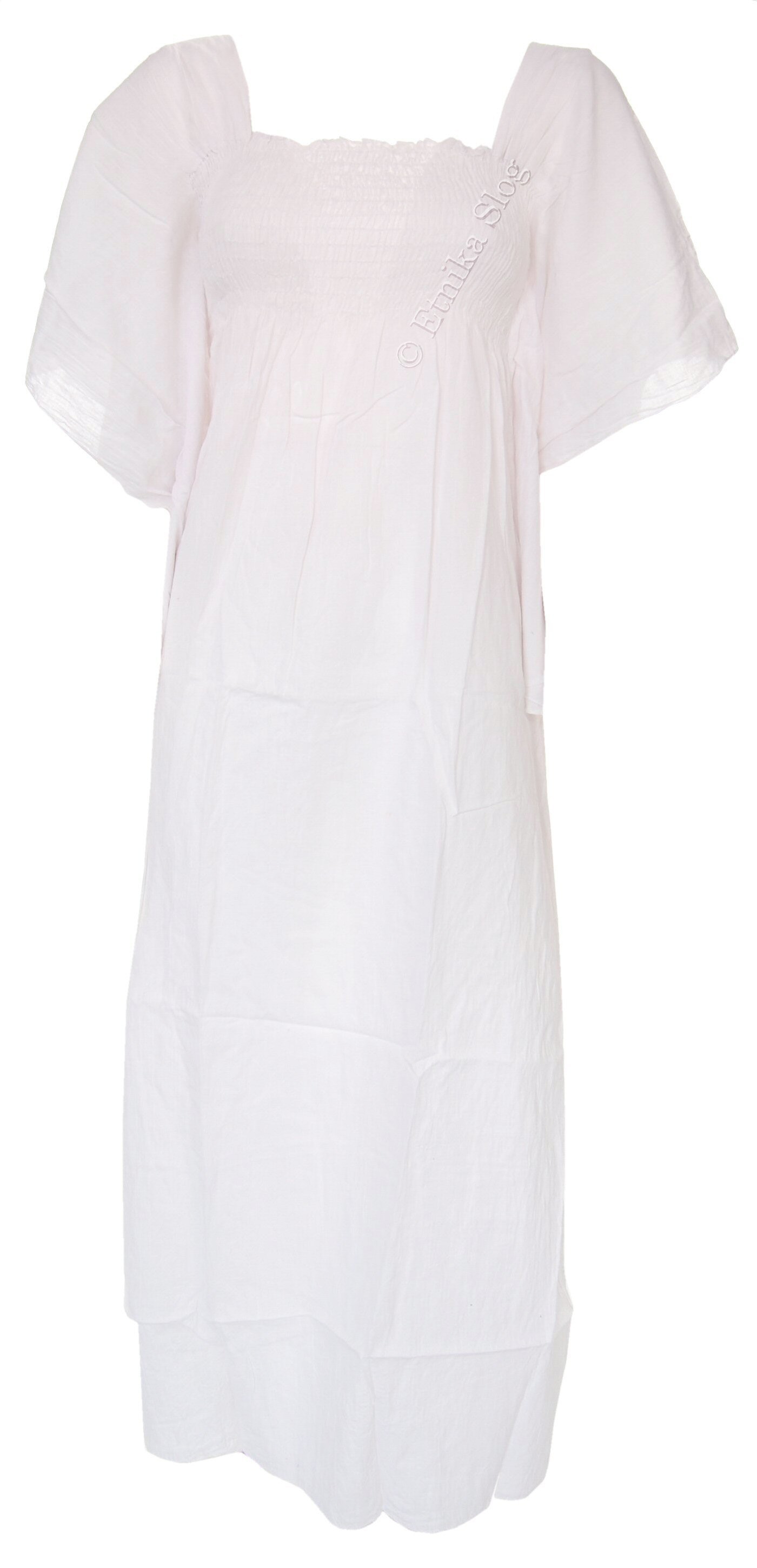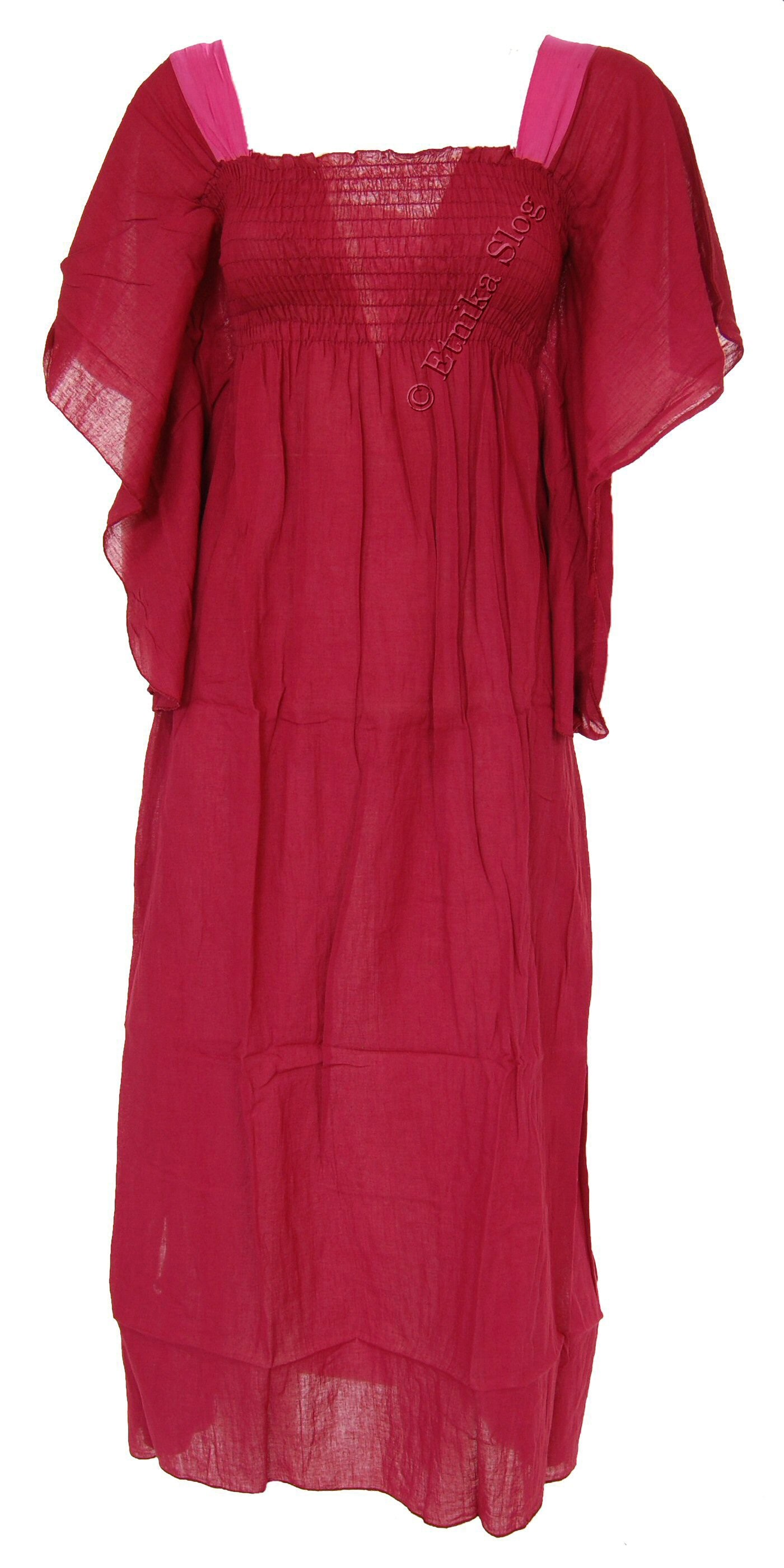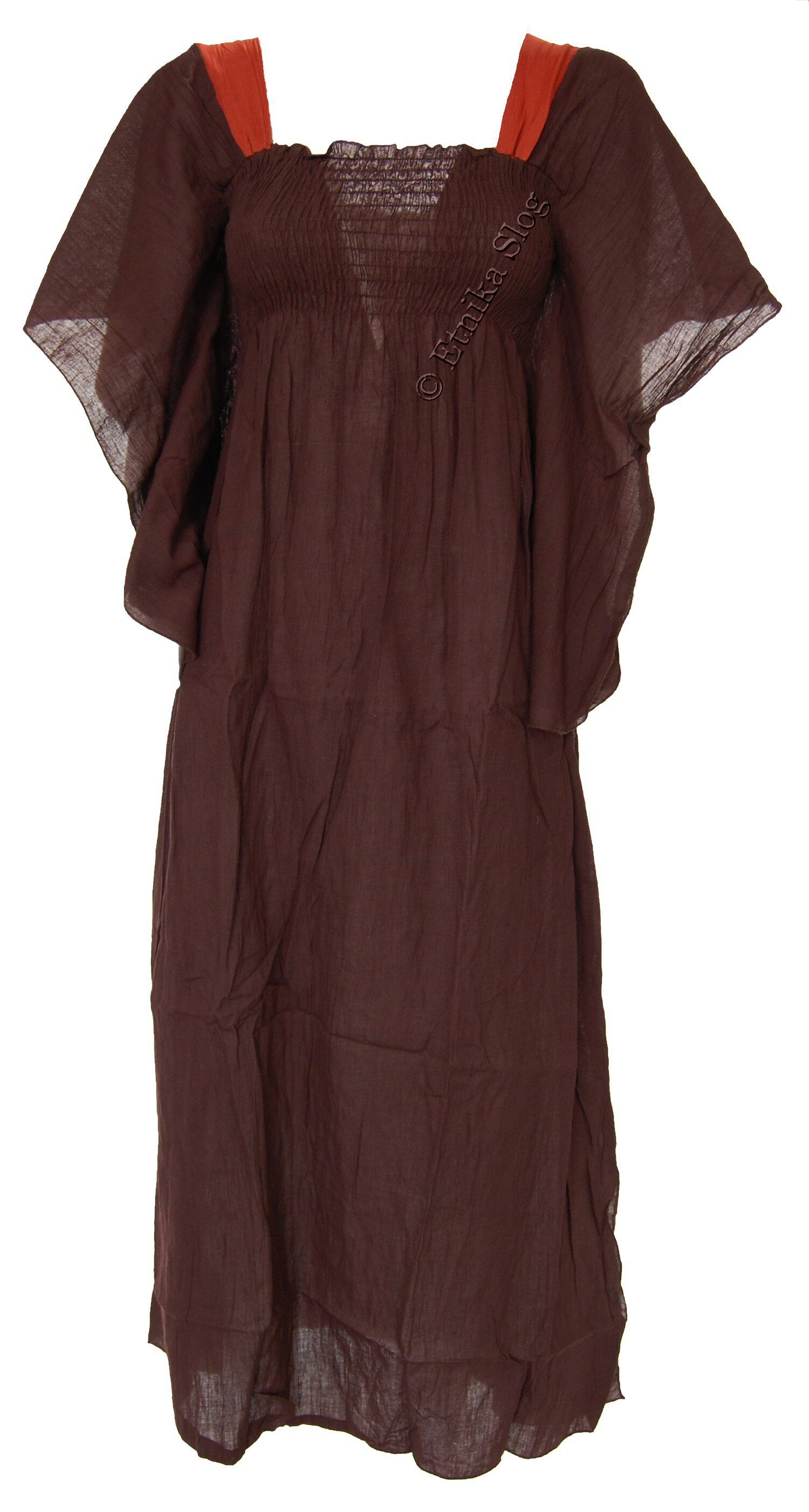 DOLGA OBLEKA IZ LAHKEGA BOMBAŽA, ENOBARVNA, Z ELASTIKO V PASU IN ROKAVI NA METULJA. DOBAVLJIVA V 2 VELIKOSTIH (M), (L) IN RAZLIČNIH BARVAH.