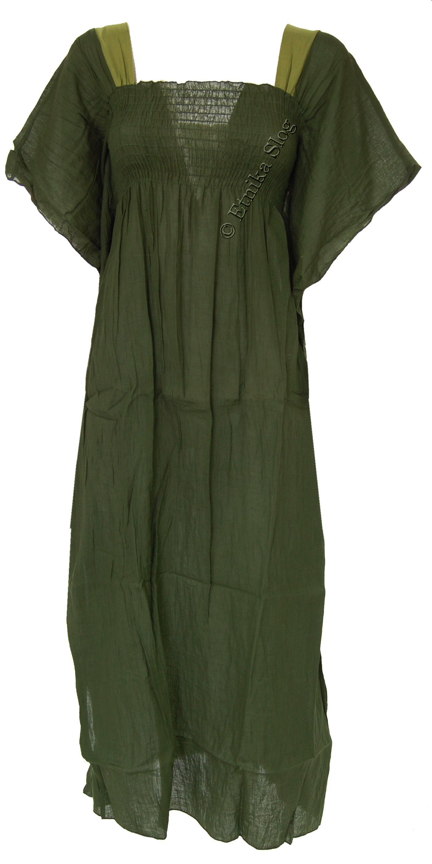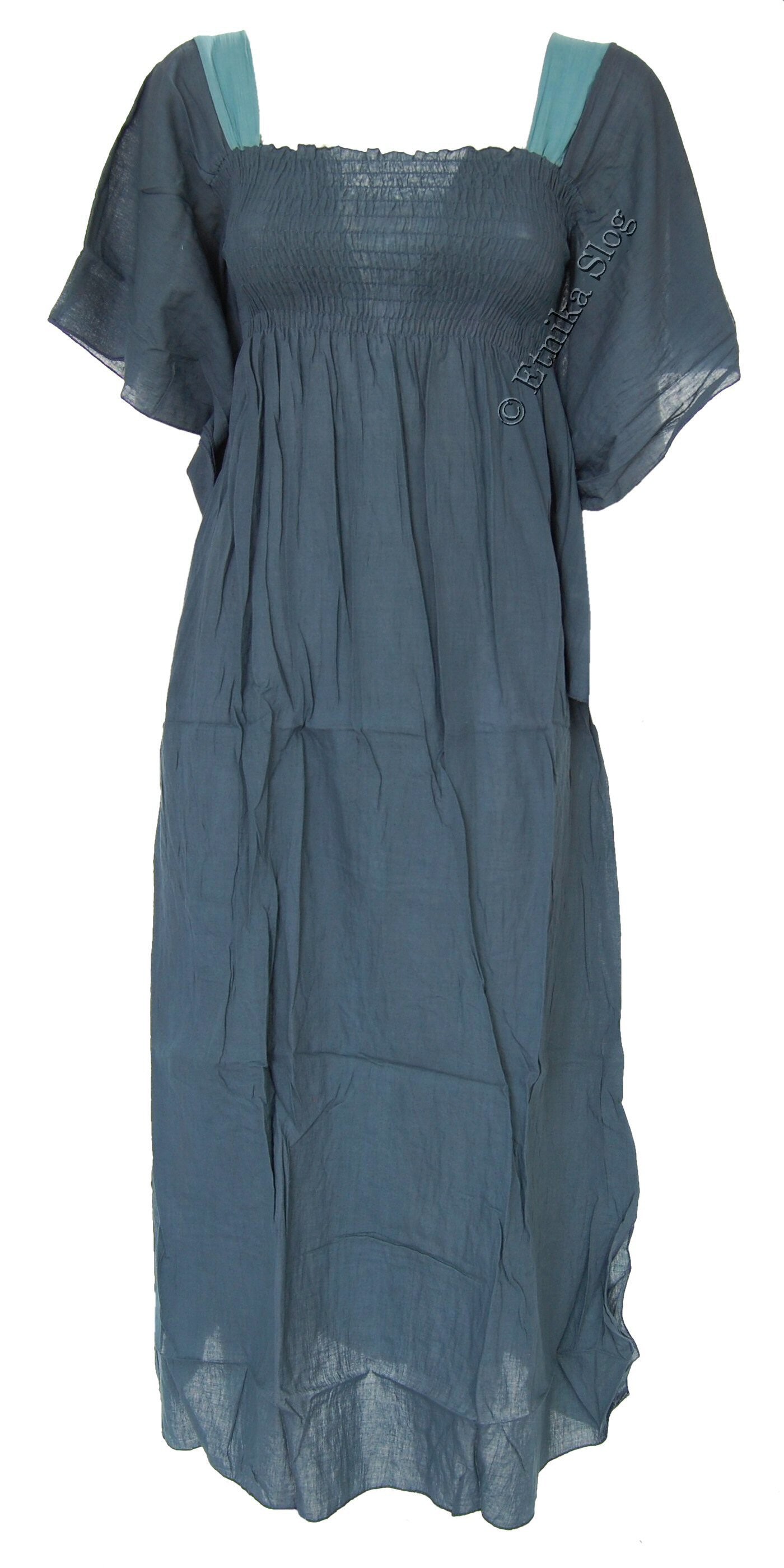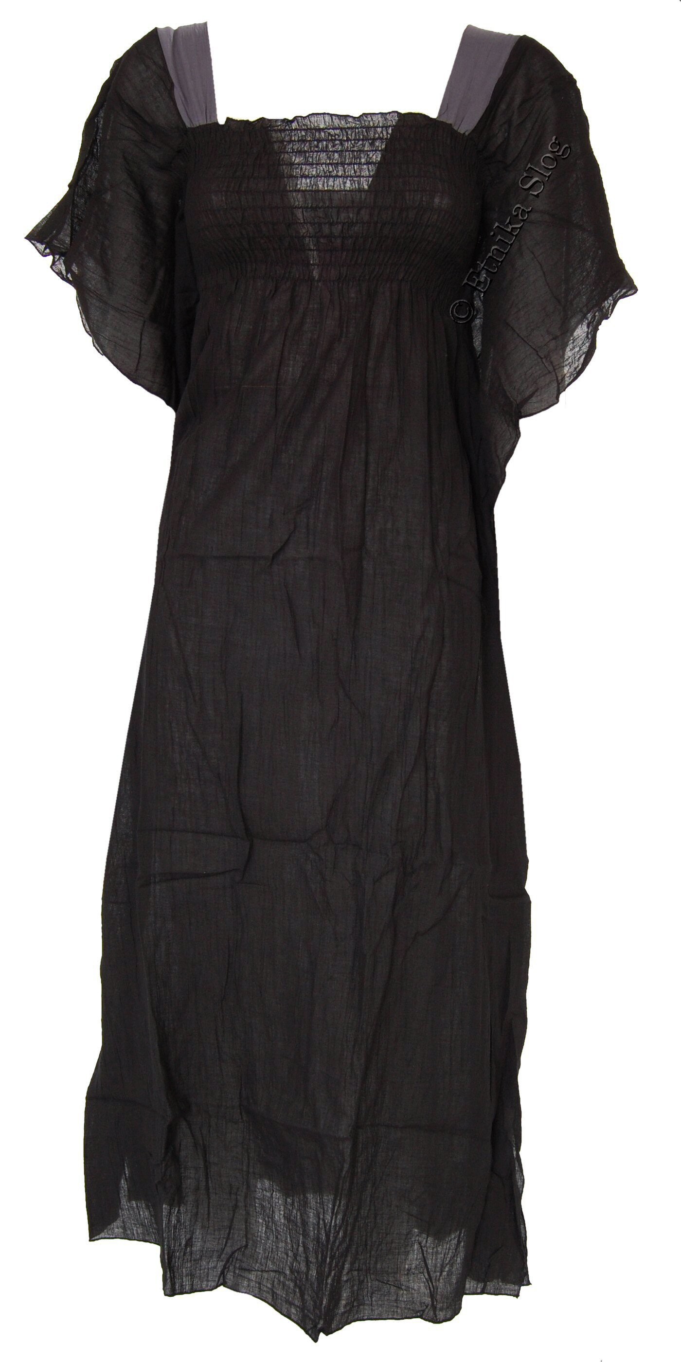 DOLGA OBLEKA IZ LAHKEGA BOMBAŽA, ENOBARVNA, Z ELASTIKO V PASU IN ROKAVI NA METULJA. DOBAVLJIVA V 2 VELIKOSTIH (M), (L) IN RAZLIČNIH BARVAH.