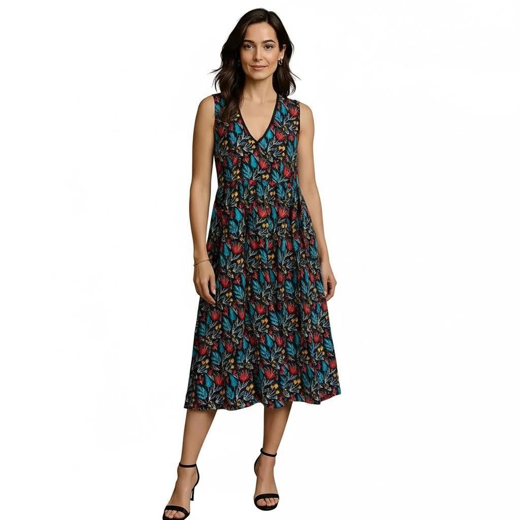 LAHKA POLETNA OBLEKA IZ BOMBAŽA, BREZ ROKAVOVZ NASTAVLJIVIMI NARAMNICAMI IN TRAKOM.NA VOLJO RAZLIČNI POTISKI IN UNIVERZALNA VELIKOST.