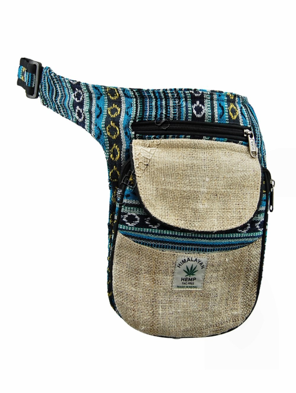 STRANSKA TORBICA ZA OKROG PASU IZ KONOPLJE IN BOMBAŽA.