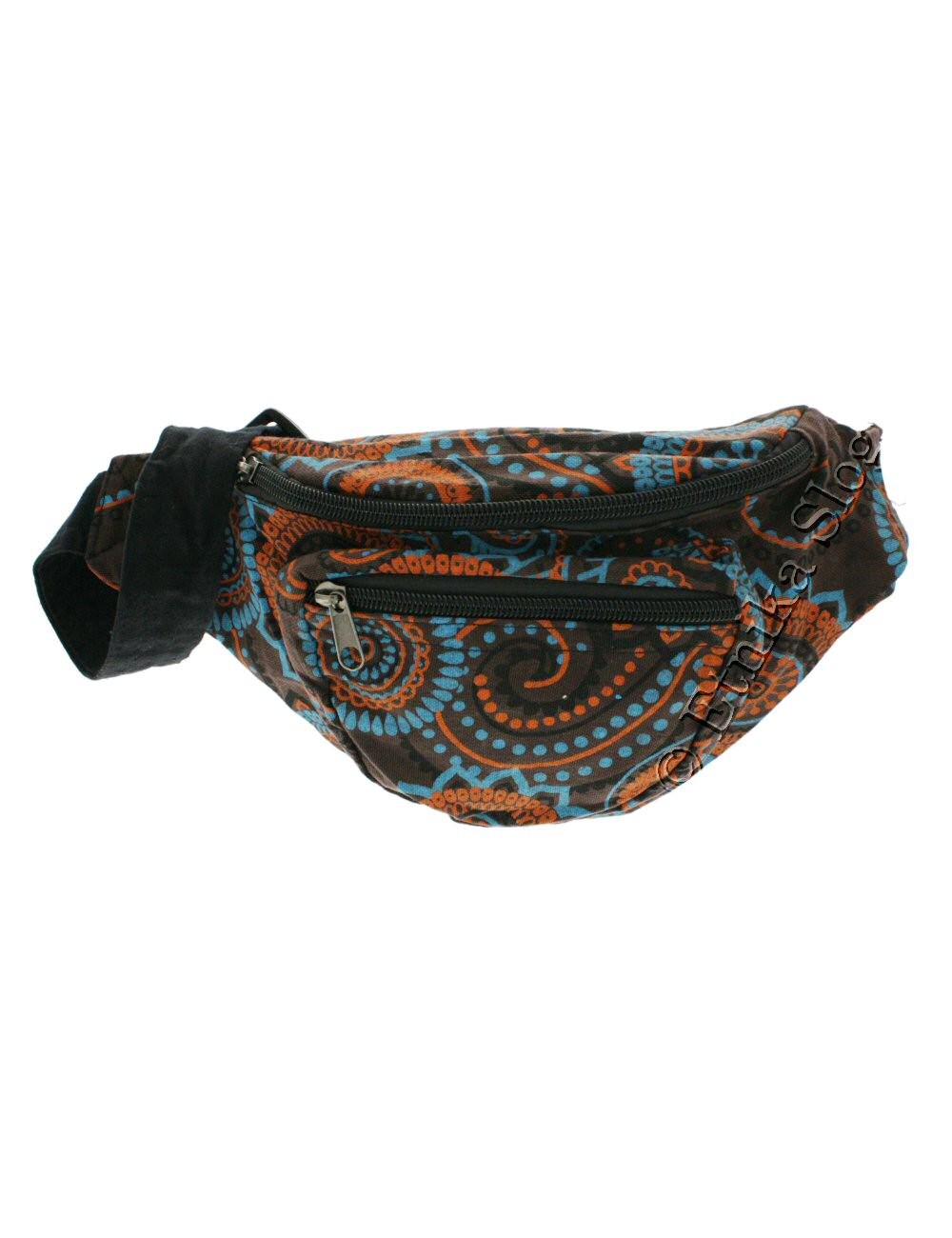 TORBICA ZA OKROG PASU IZ BOMBAŽA, Z UNIKATNIMI POTISKI IN TREMI ŽEPI Z ZADRGO.